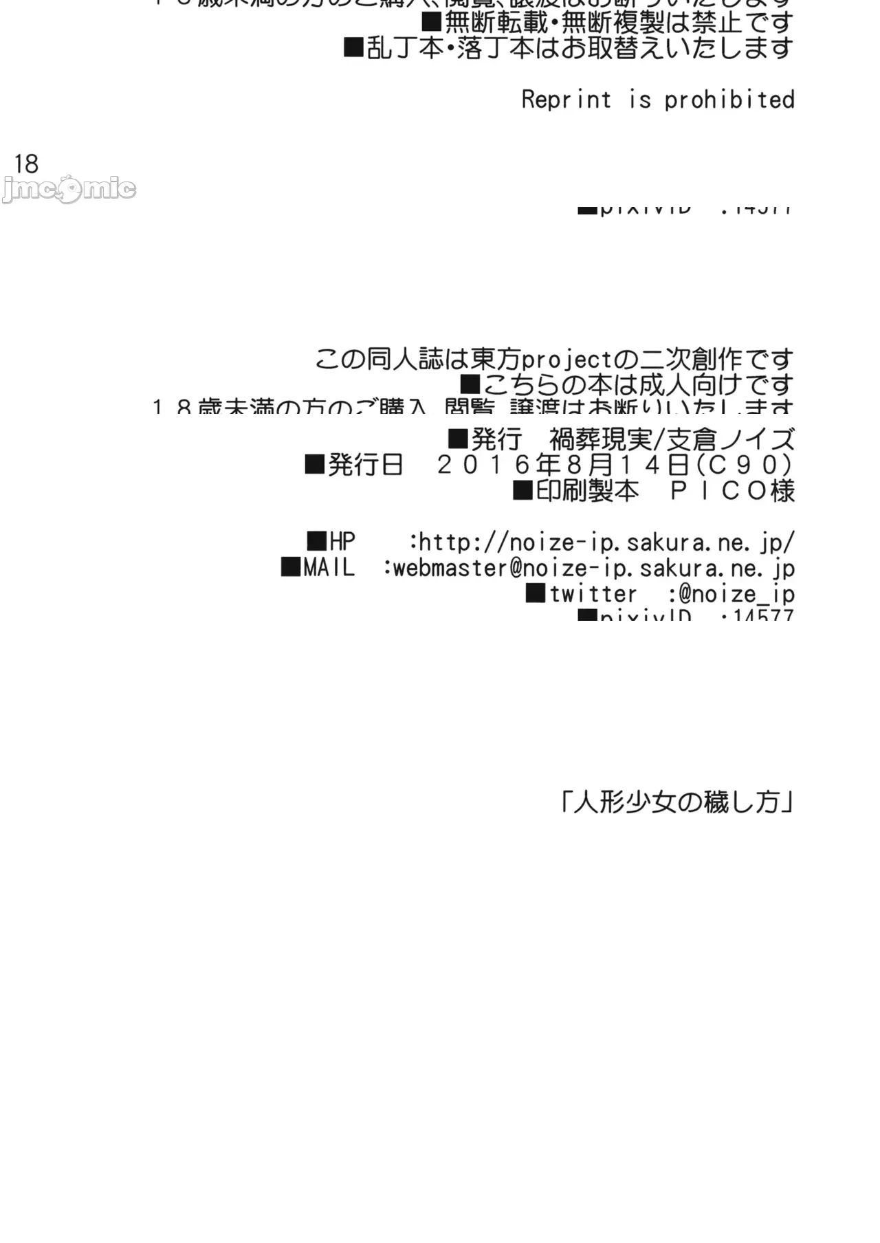 [KOKORO个人汉化] (C90) [禍葬現実 (支倉ノイズ)] 人形少女の穢し方 (東方Project) [中国翻译]