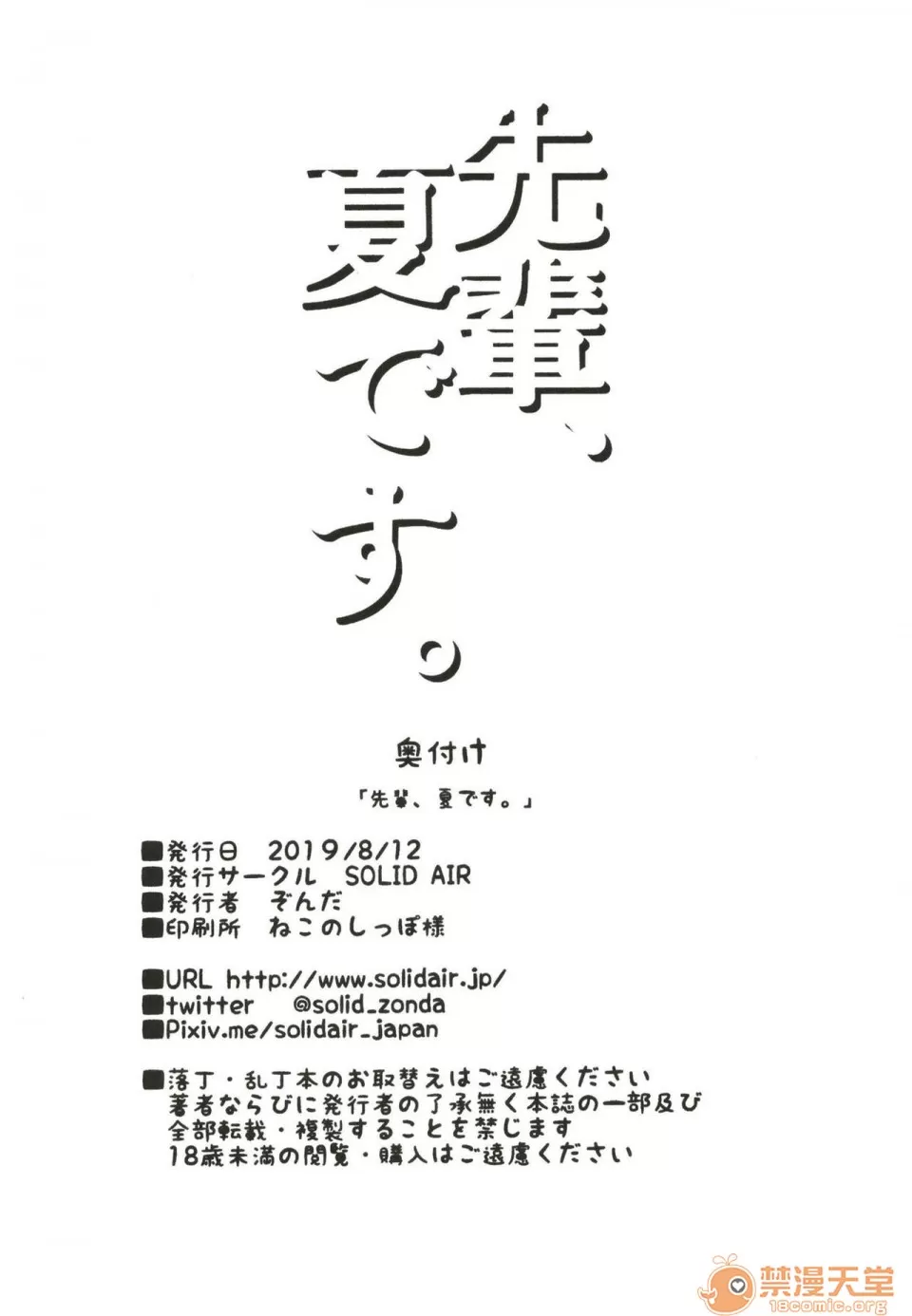 [黑鍋漢化組] (C96)[SOLID AIR (ぞんだ)] 先輩、夏です。 (Fate/Grand Order) [中國翻訳] [DL版]