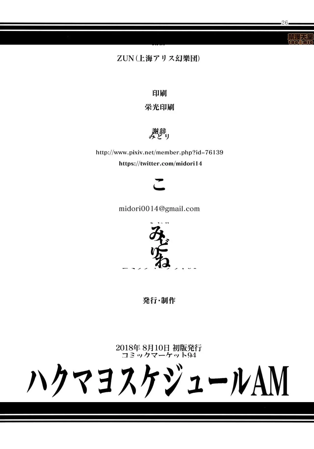 [不咕鸟汉化组] (C94) [みどりねこ (みどり)] ハクマヨスケジュールAM (東方Project)
