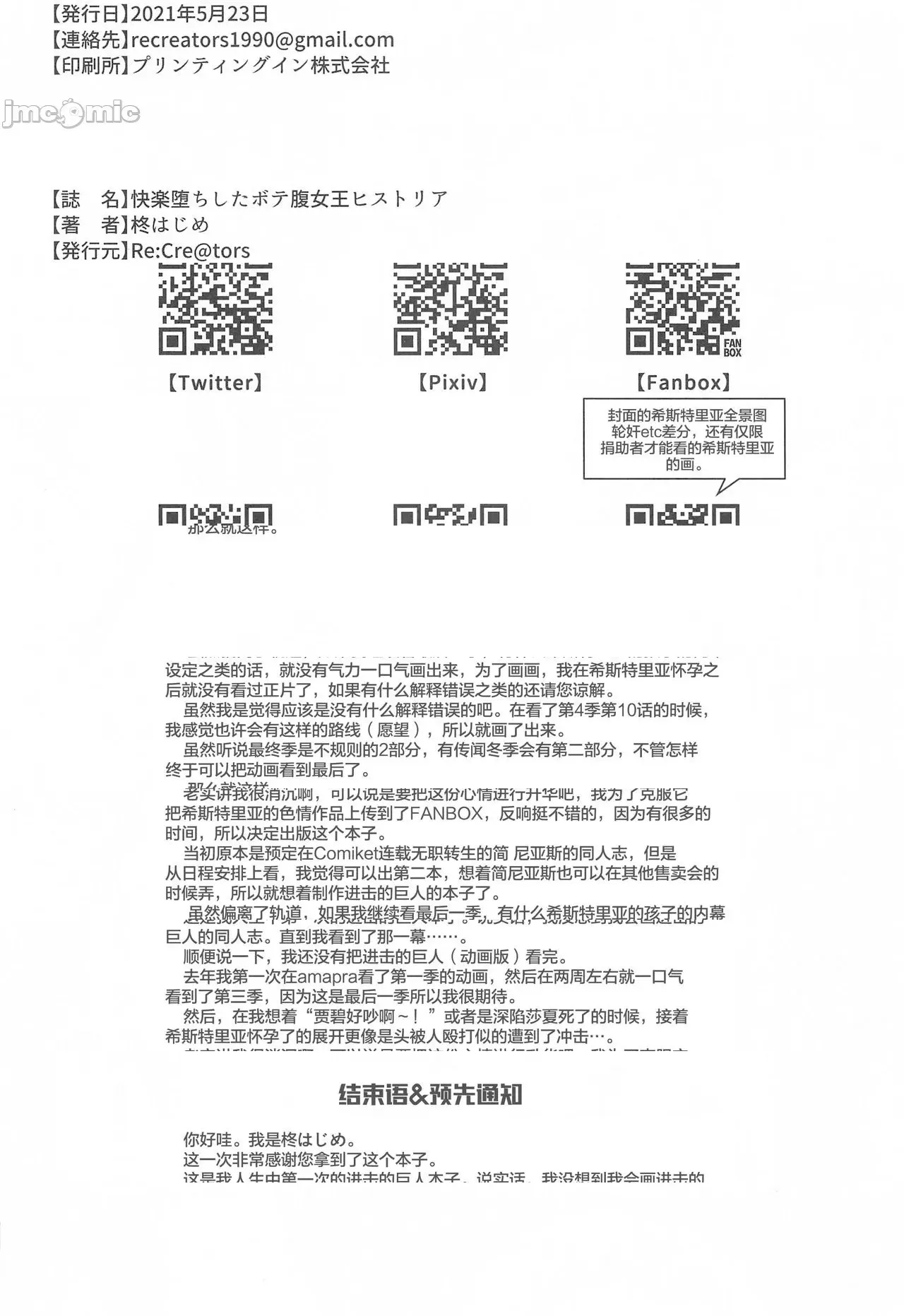 [罗洁爱儿个人机翻] (COMIC1 BS祭 スペシャル) [Re:Cre@tors (柊はじめ)] 快楽堕ちしたボテ腹女王ヒストリア (進撃の巨人) [中国翻訳]