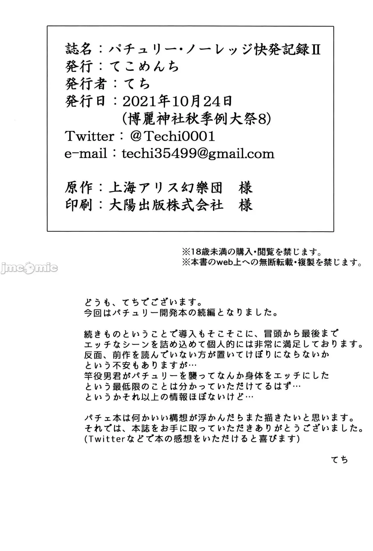[白杨汉化组] (秋季例大祭8) [てこめんち (てち)] パチュリー・ノーレッジ快発記録II (東方Project) [中国翻訳]