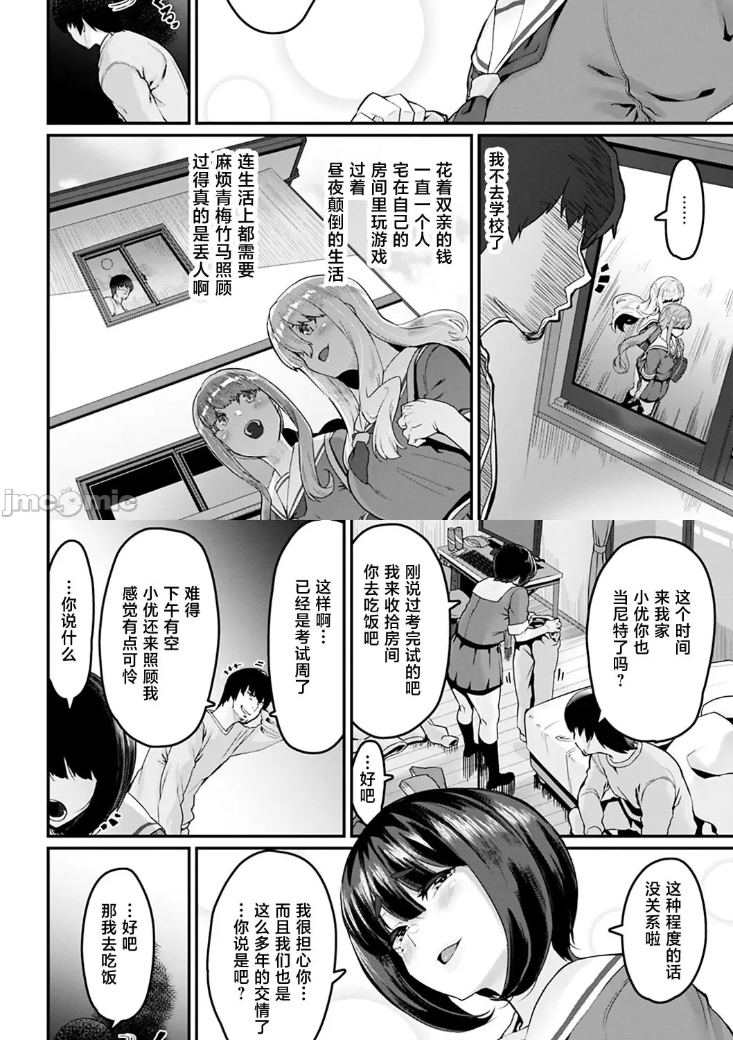最后一页男主没有画表情直接上,应该最后还是被孤立自暴自弃厌学?