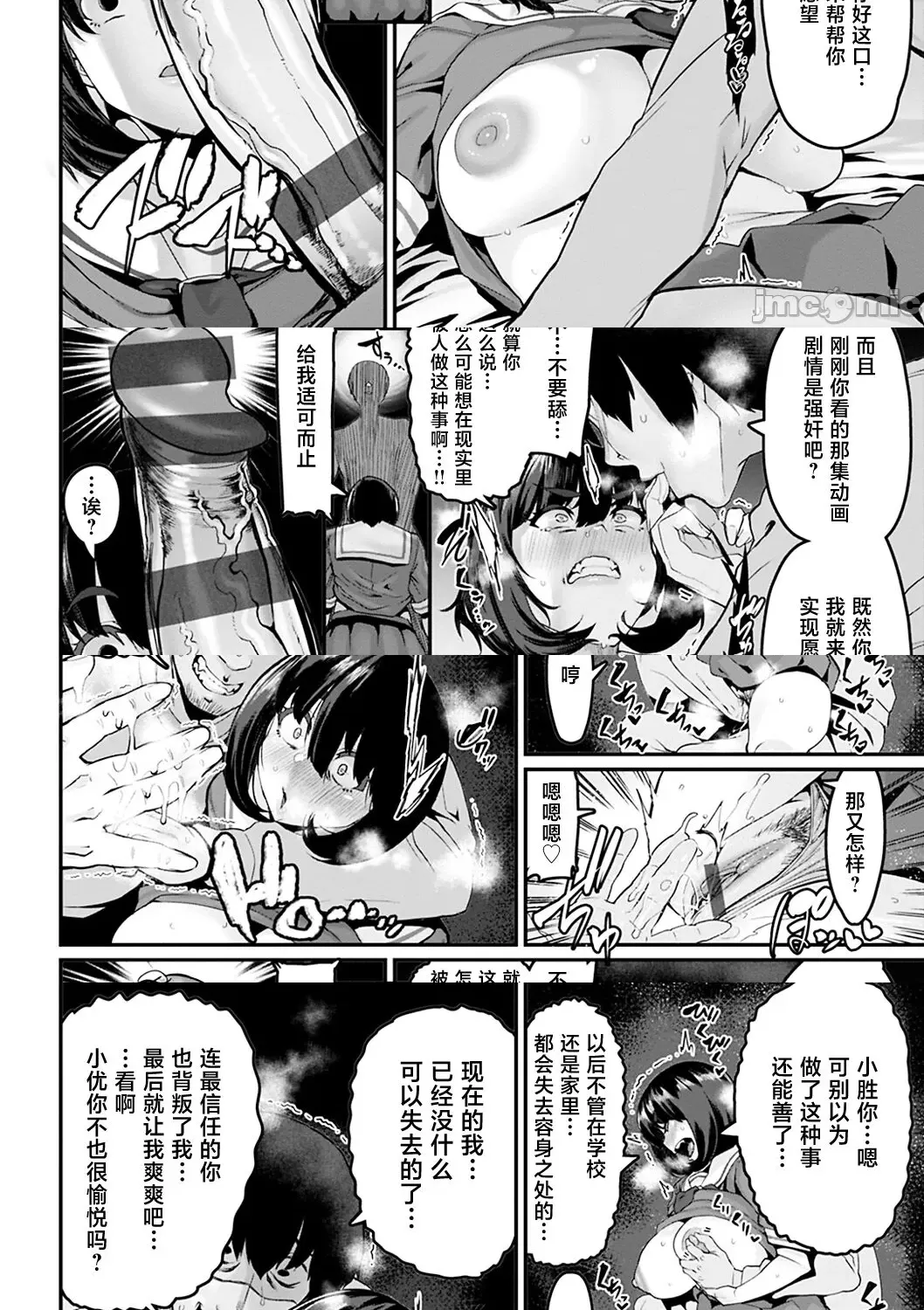 最后一页男主没有画表情直接上,应该最后还是被孤立自暴自弃厌学?