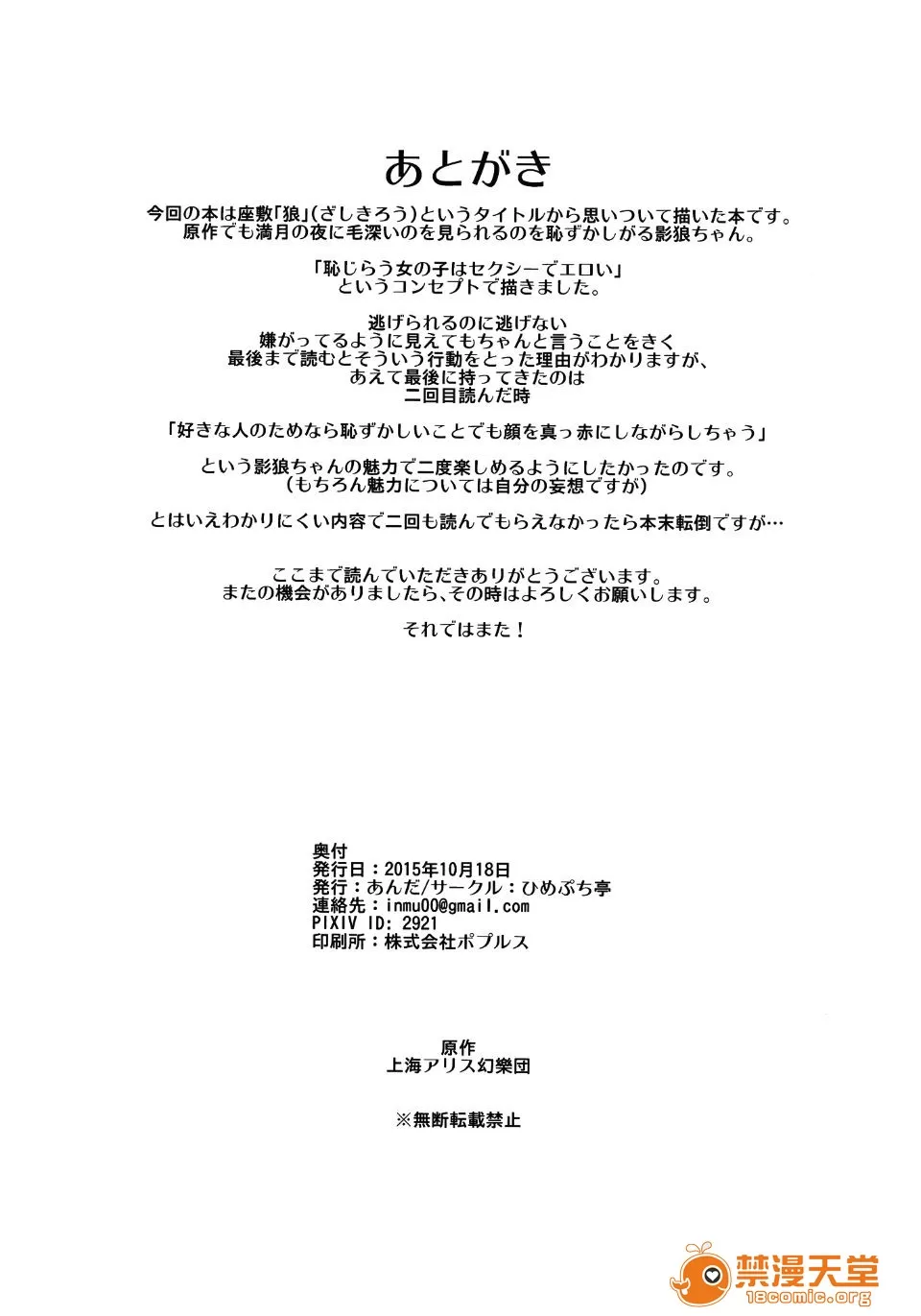 (秋季例大祭2) [ひめぷち亭 (あんだ)] 座敷狼 (東方Project)