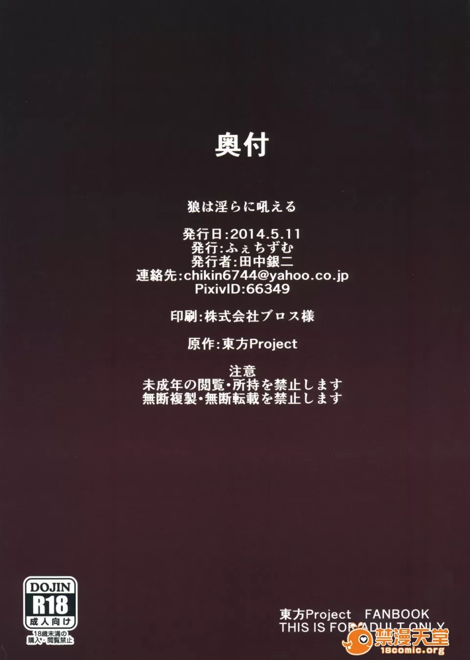 (例大祭11) [ふぇちずむ (田中銀二)] 狼は淫らに吼える (東方Project)