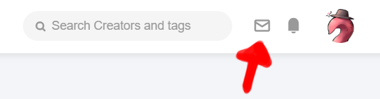 Fanbox 사이트 우측 상단의 메시지 모양 아이콘을 클릭해주세요.