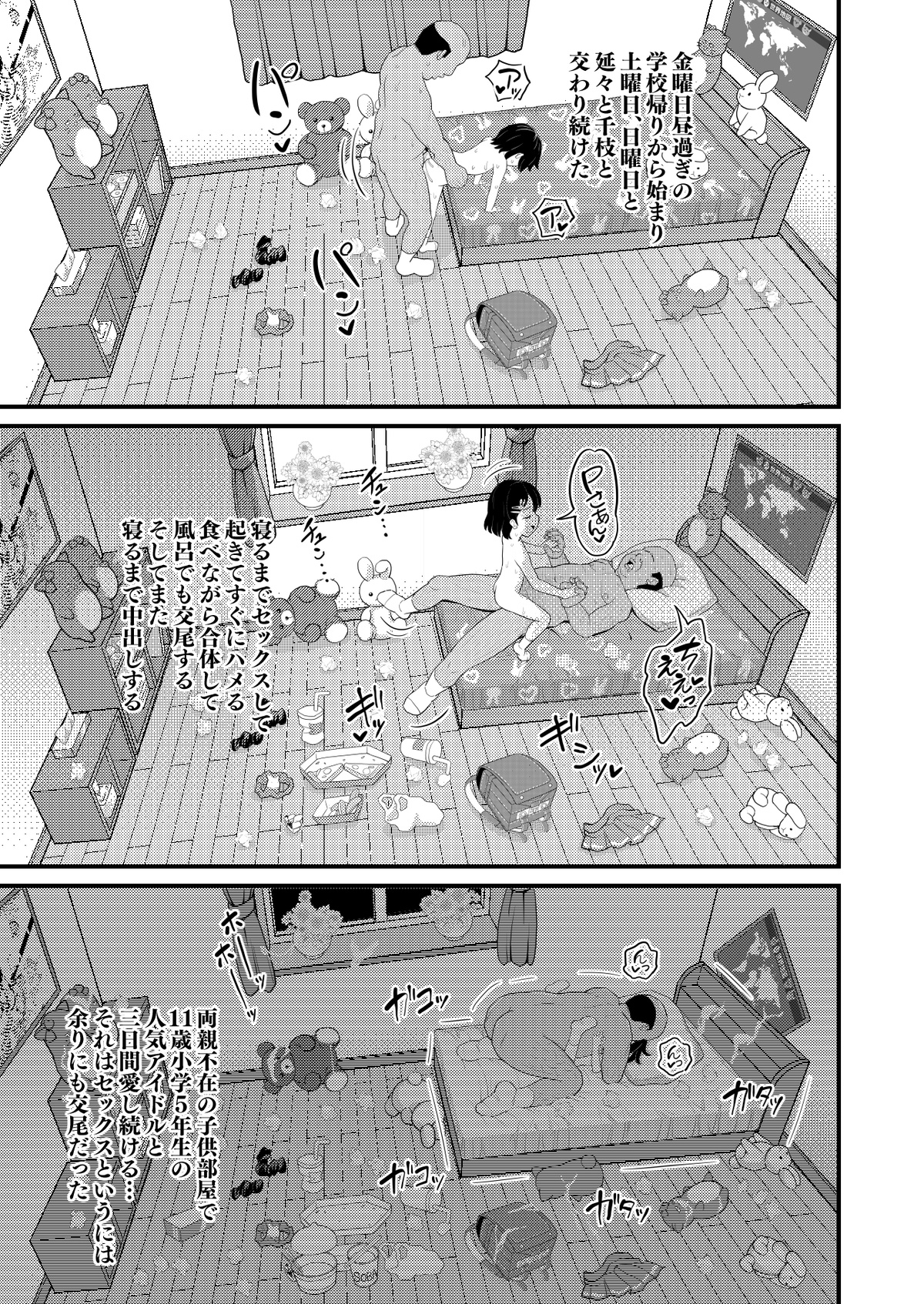 中年Pに恋した千枝cが事務所、ラブホ、子供部屋でひたすらいちゃラブする漫画です
