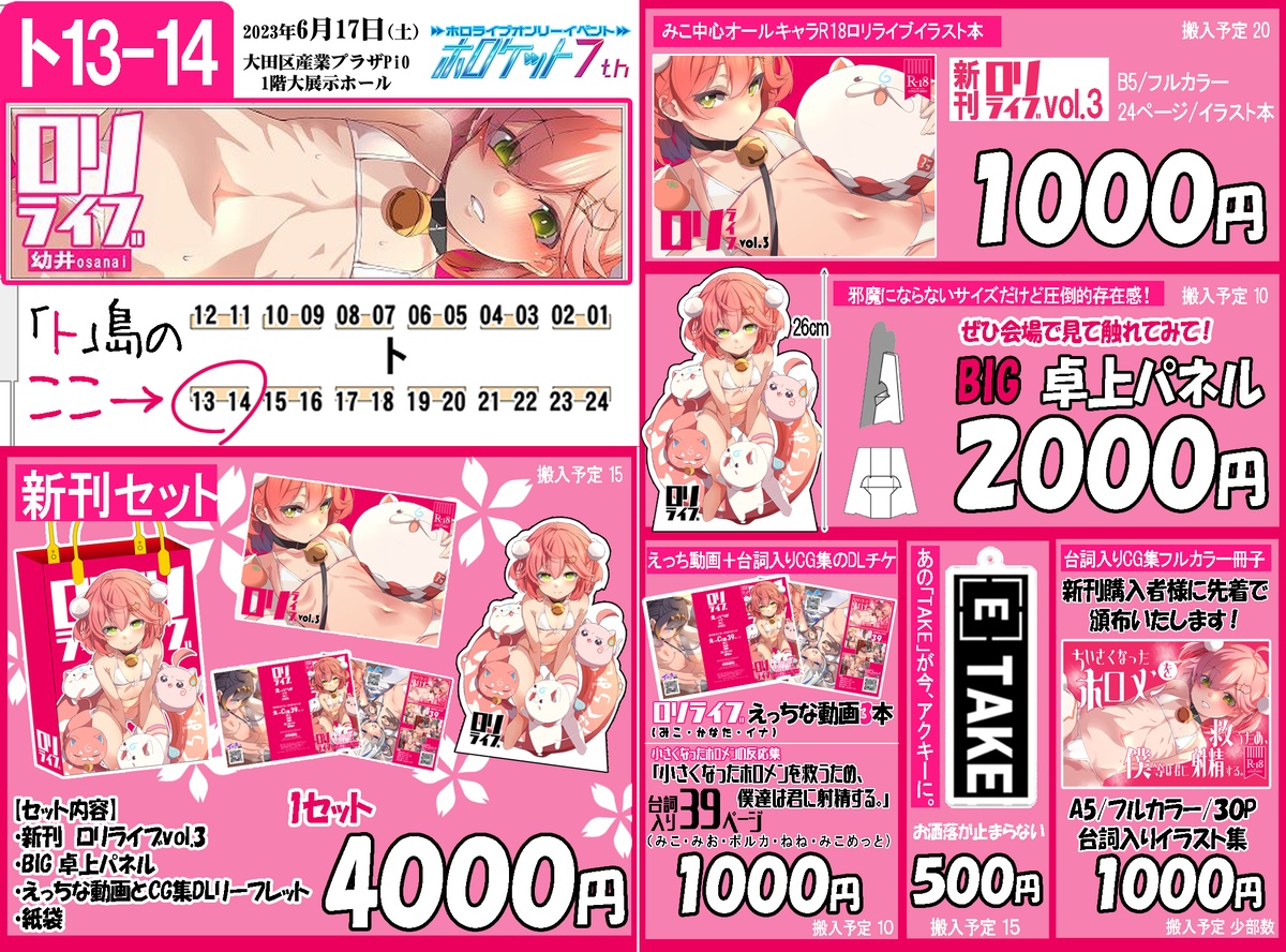 今回、印刷費やホロクルから2カ月しかたっていないこと、あと2か月でコミケといったところとの月周りとの兼ね合いで本・グッズ共に数が読めずあまり刷っていませんのでお早目のご来場をお勧めいたします!よろしくお願いします!