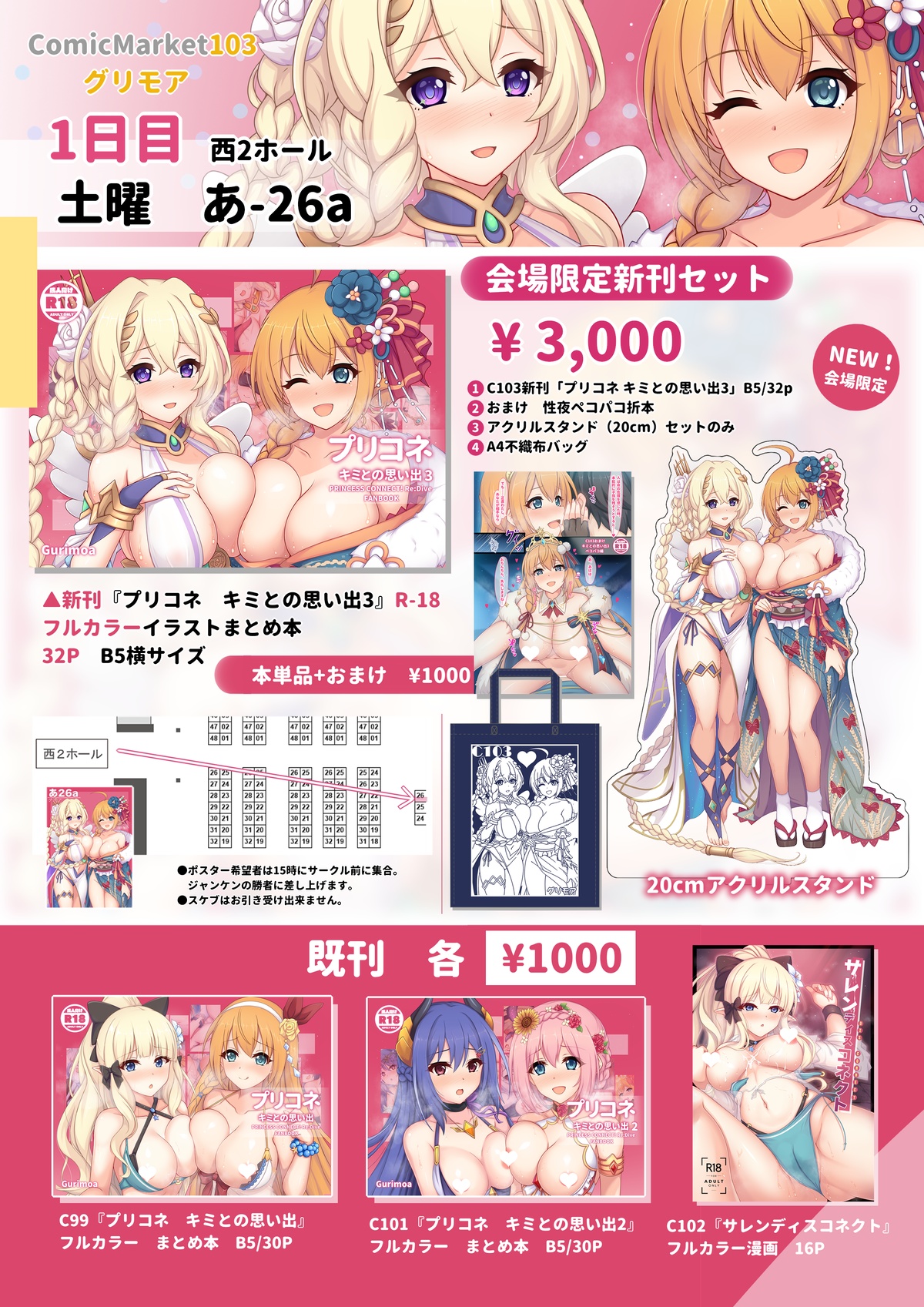 新刊単品もございます『プリコネまとめ本3+性夜ペコパコ折本』、会場価格1000円になります。