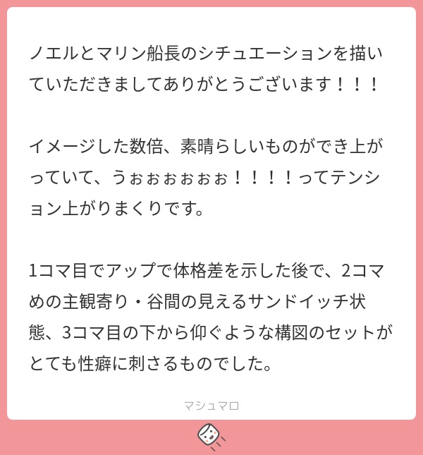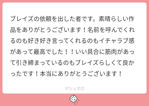 以下、お題箱の個別依頼のご感想のお手紙です