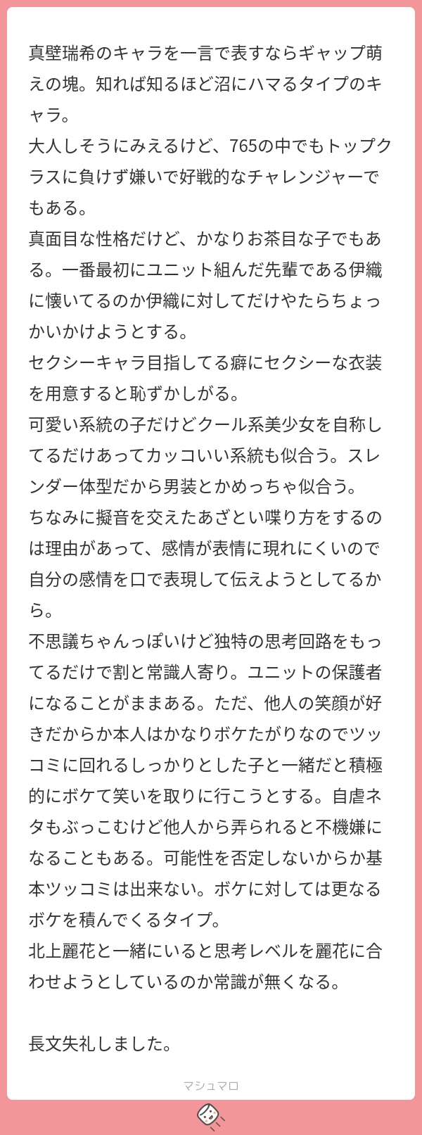 この熱量…もしかしてお題箱にめっちゃ真壁瑞希ちゃんのご依頼を送ってくれている人か…!?