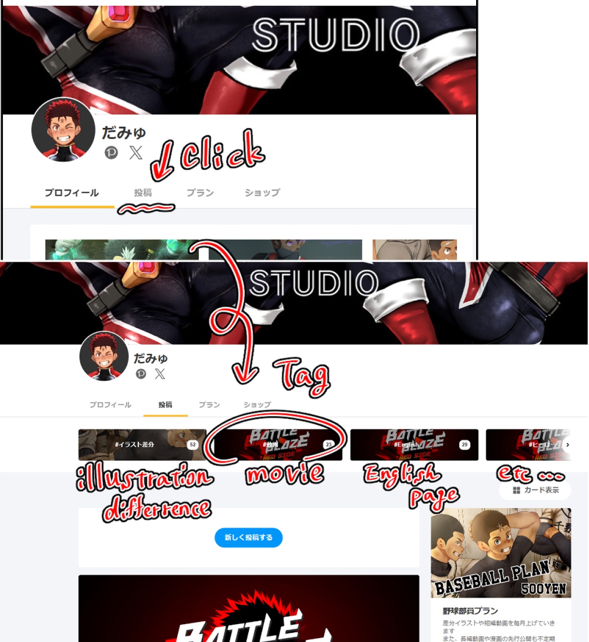 Tags are also divided into genres such as illustration differences, heroes, and ball players, so if you want to see this or that, you may make use of them.