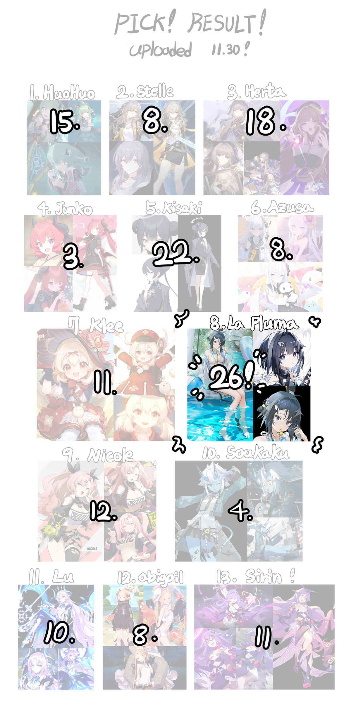 Due to my health recovery, the upload has been slightly delayed, the upload schedule for the 19th and Lapluma on the 28th will be rescheduled to the 23rd and 30th, respectively. I'll make sure to recover quickly from this delay. i very Sorry