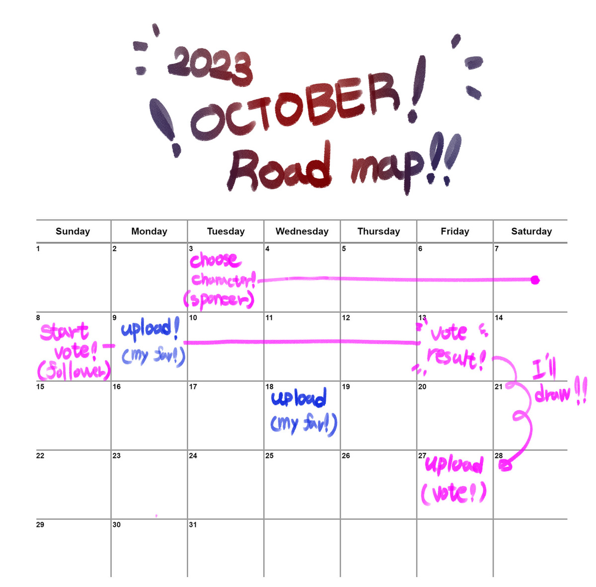 here's the roadmap for OCTober!!!!!!!!!
