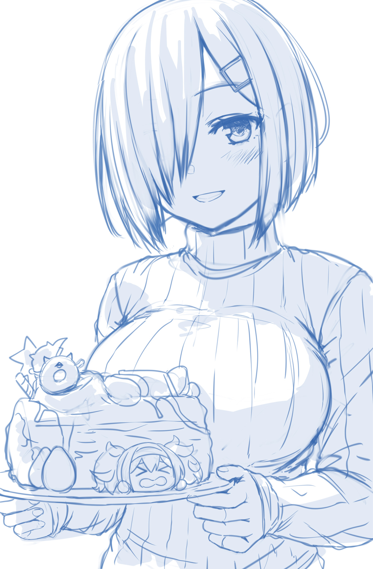 デカパイニットが描きたかっただけですが、ケーキにベイちゃんが加わることでモチベイが増しました。さすベイ。
