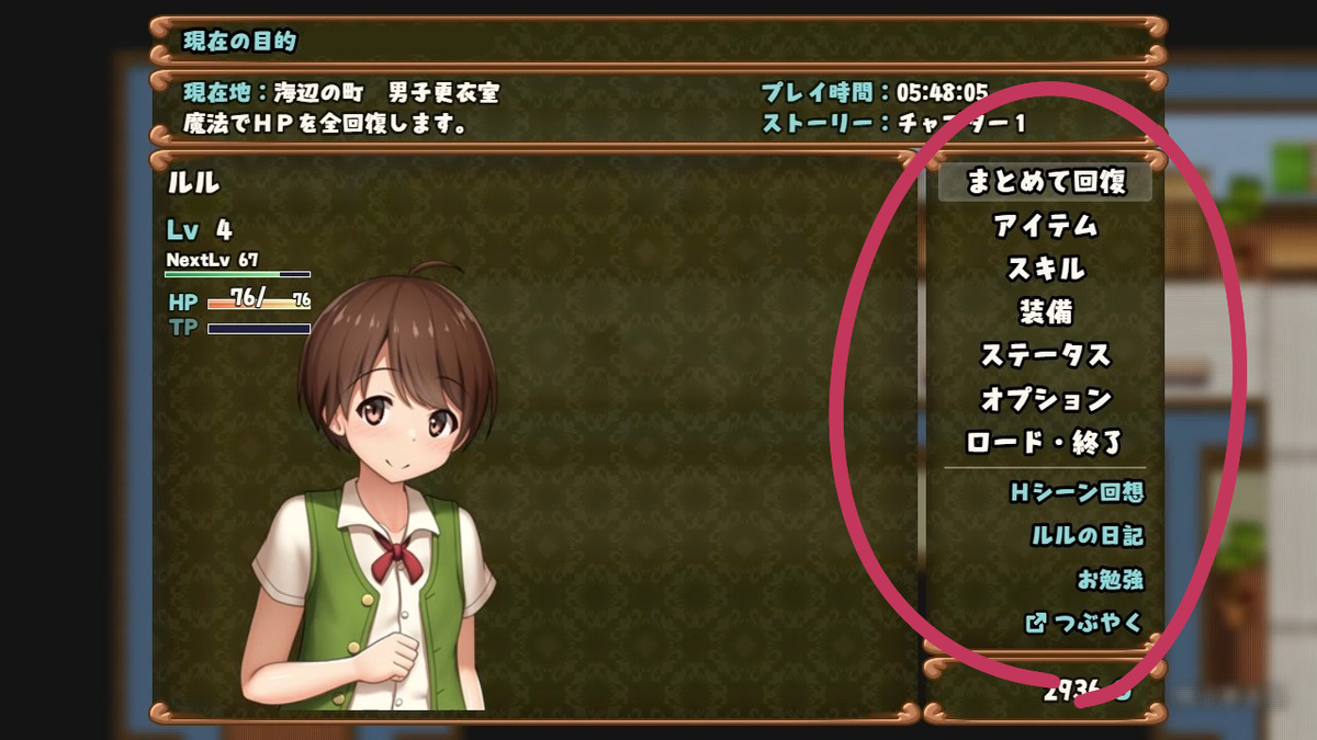 ゲームの攻略とは関係ない機能(Hシーン回想やあらすじ確認機能など)は下に寄せました。