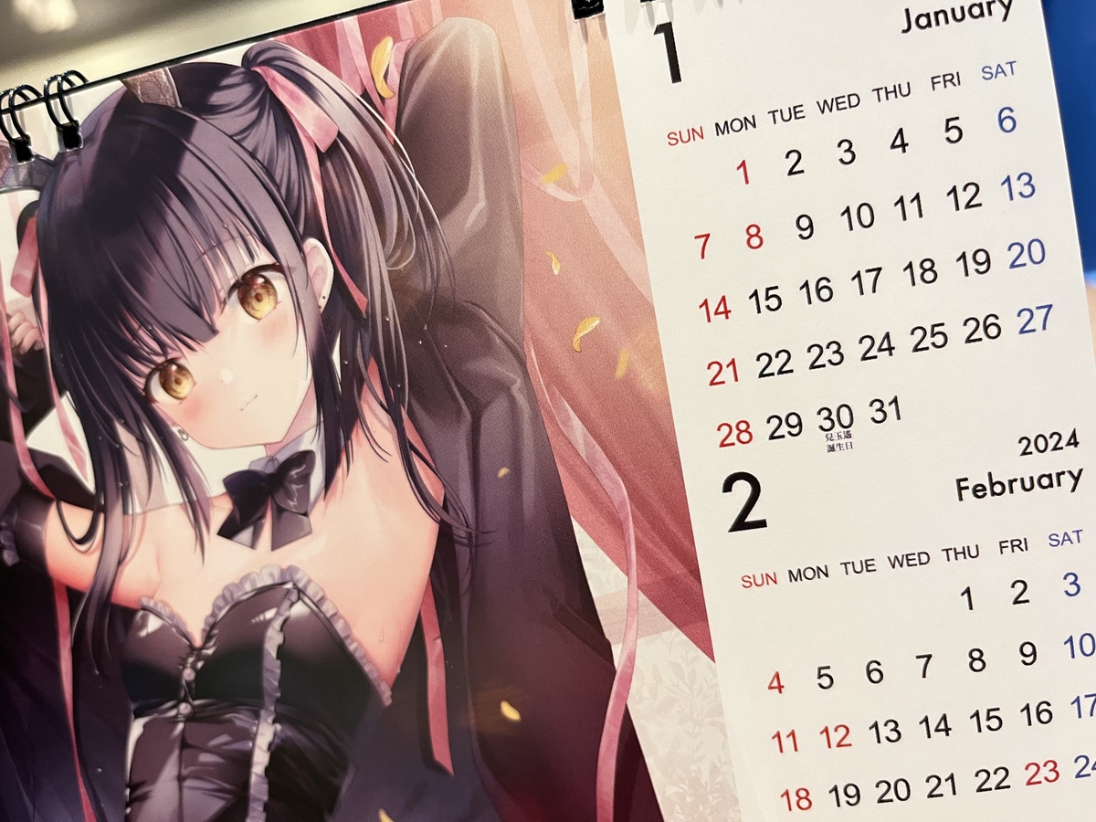 カレンダー実物の写真です♪