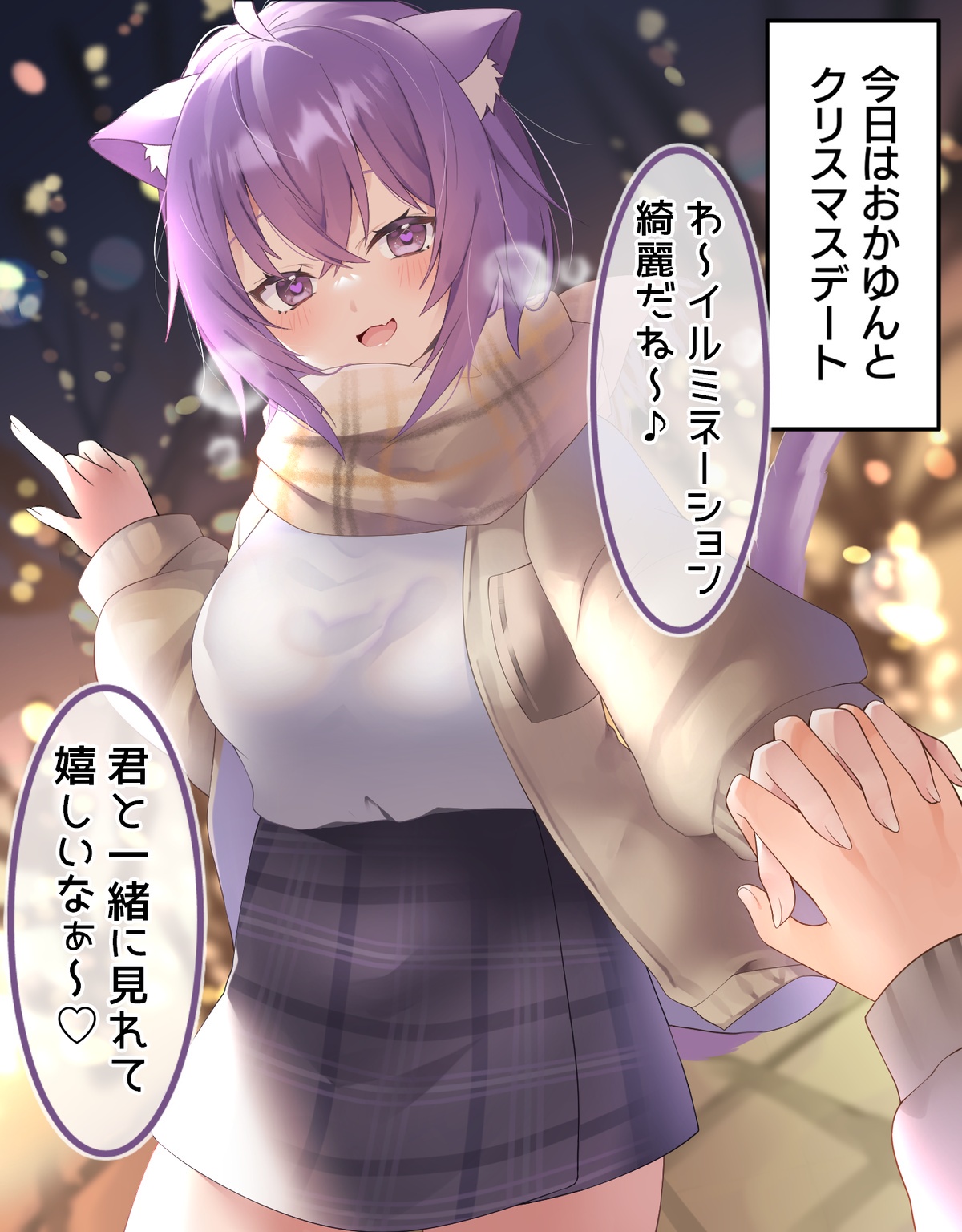 貴方とおかゆんはイルミネーションを見に行ったり、買い物を楽しんだ後、ラブホテルに入ってクリスマスプレゼント交換を行います。