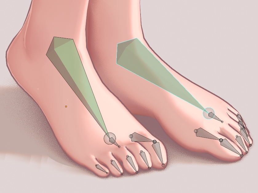 足の指にボーンを入れて、指を動かせるようにしました。
