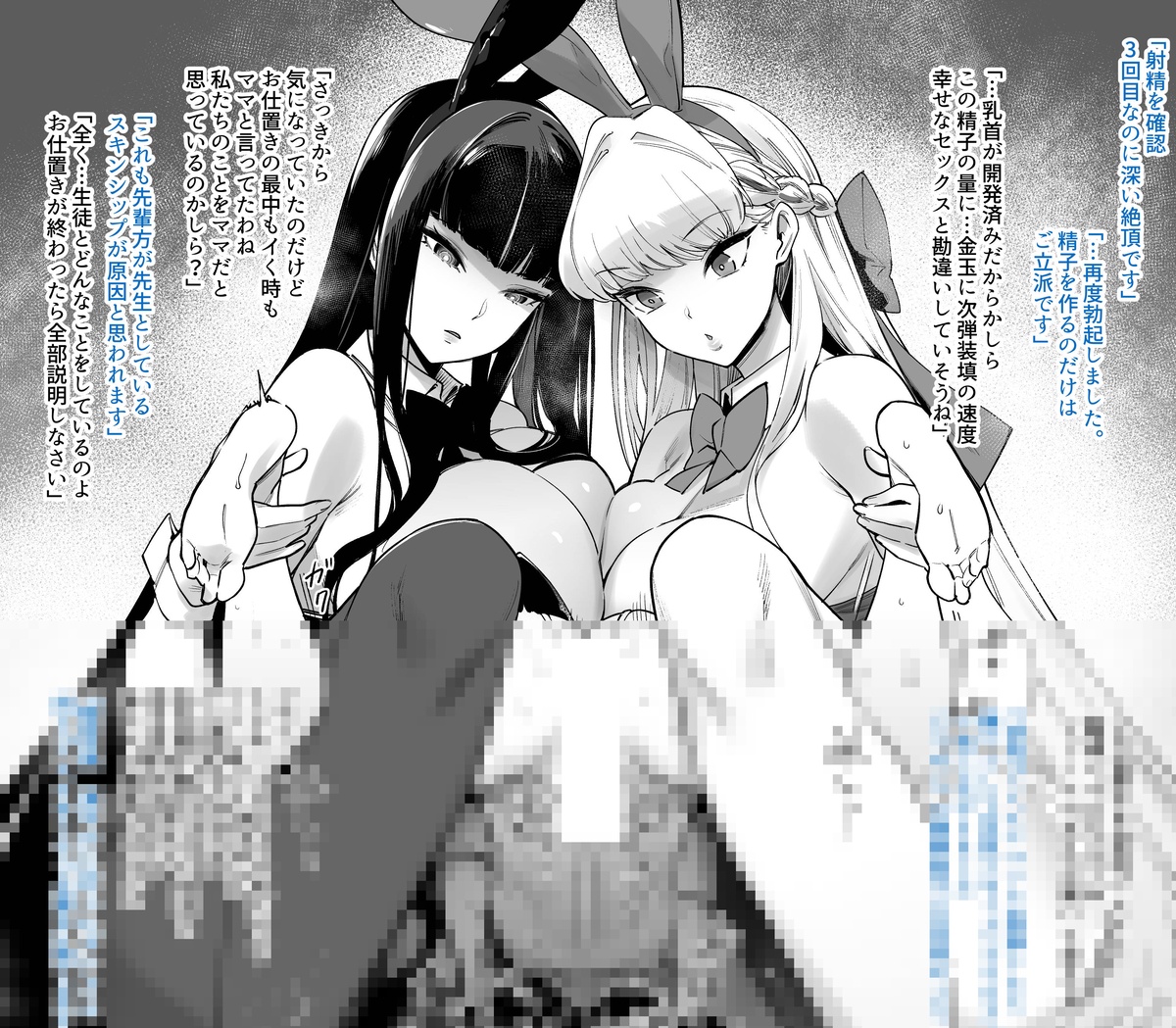 説明します。任務を失敗したのは先生の性欲が原因です。なのでリオ会長と私がわざわざ性的興奮を刺激するバニースーツを着て たっぷりと性処理お仕置きをします。感謝しなさい」