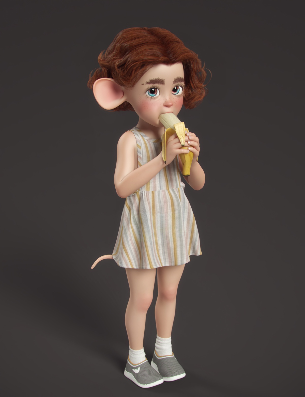 Just a little mouse trying to eat a banana