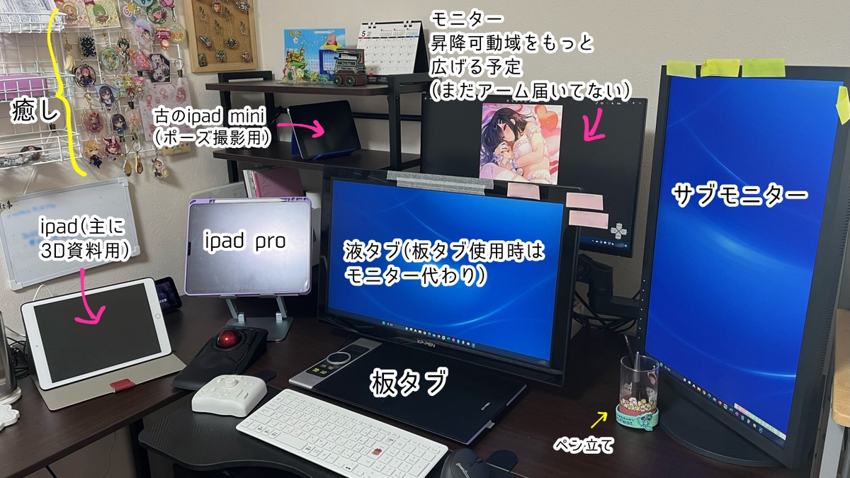 でも下書きペン入れはどうしても液タブじゃないと進まないのでそういう時だけ液タブ。