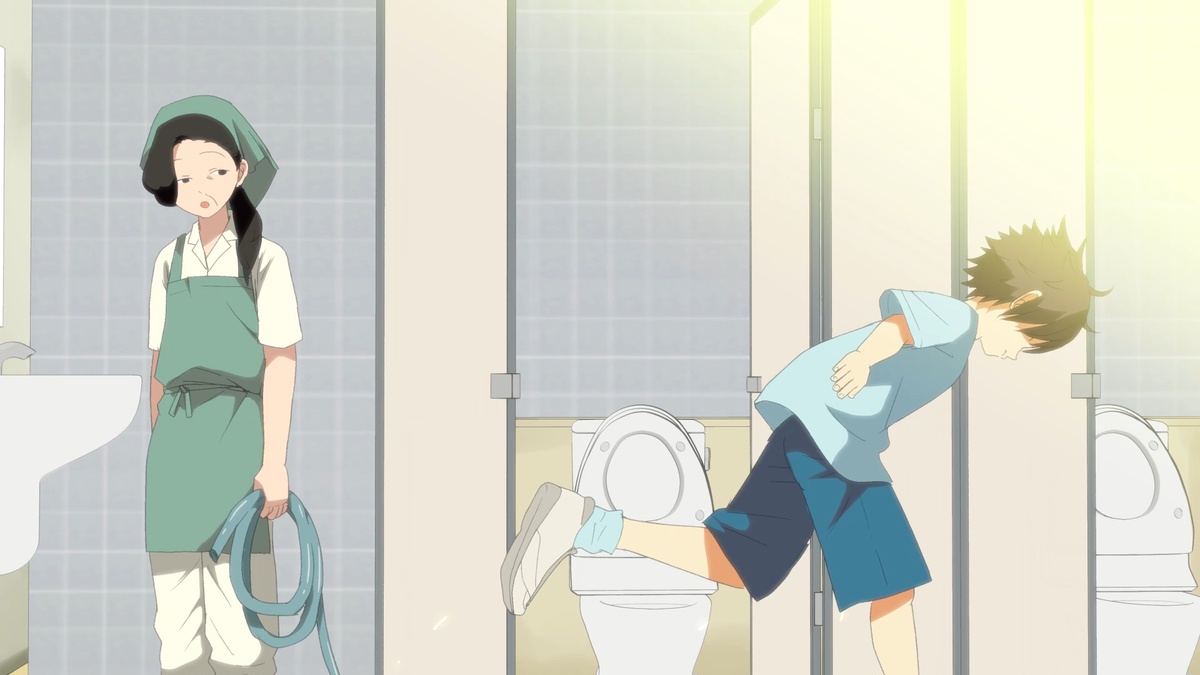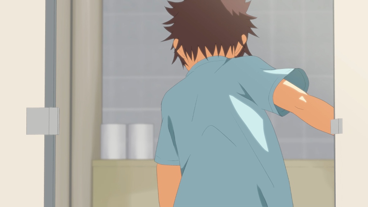 During the training in the gymnasium, he had been trying to pee to the limit but told his instructor that he had to go to the bathroom and pretended to be calm as he headed for the exit.