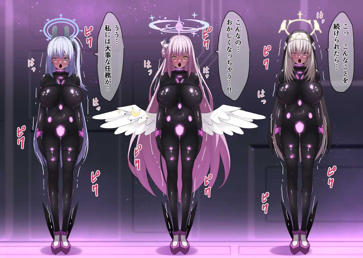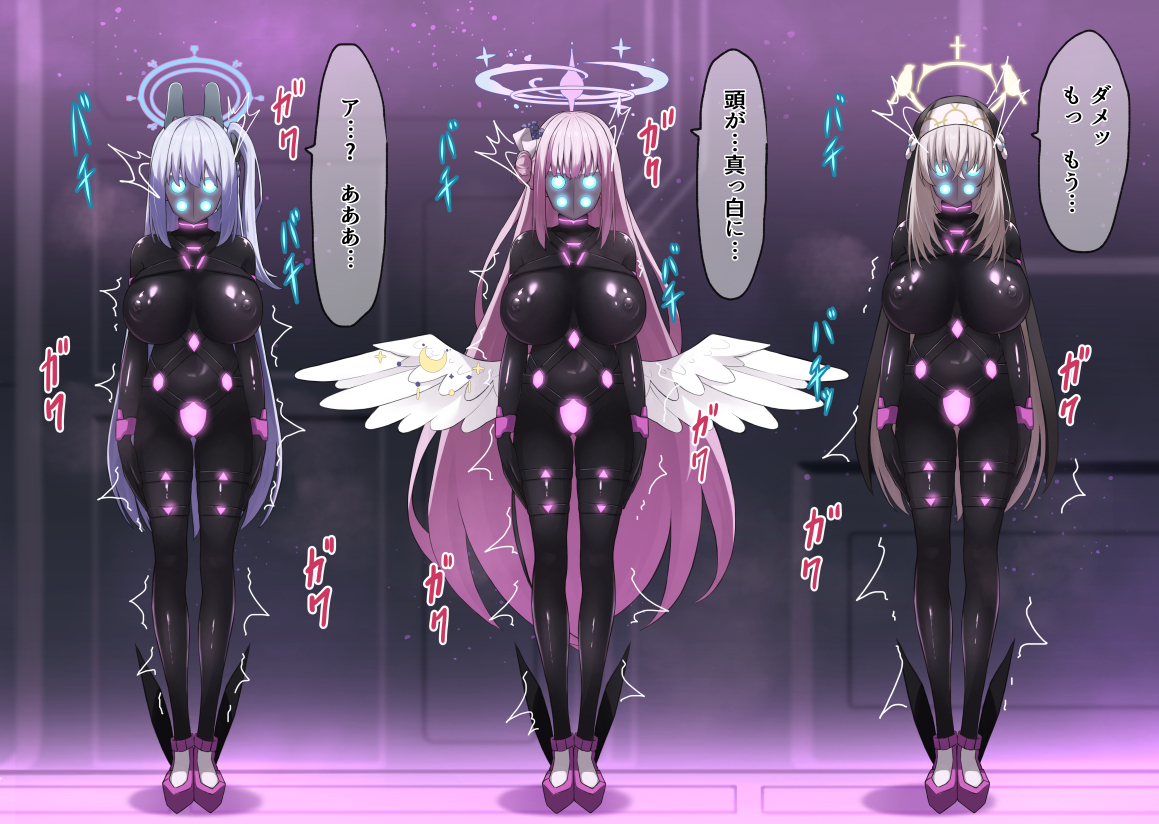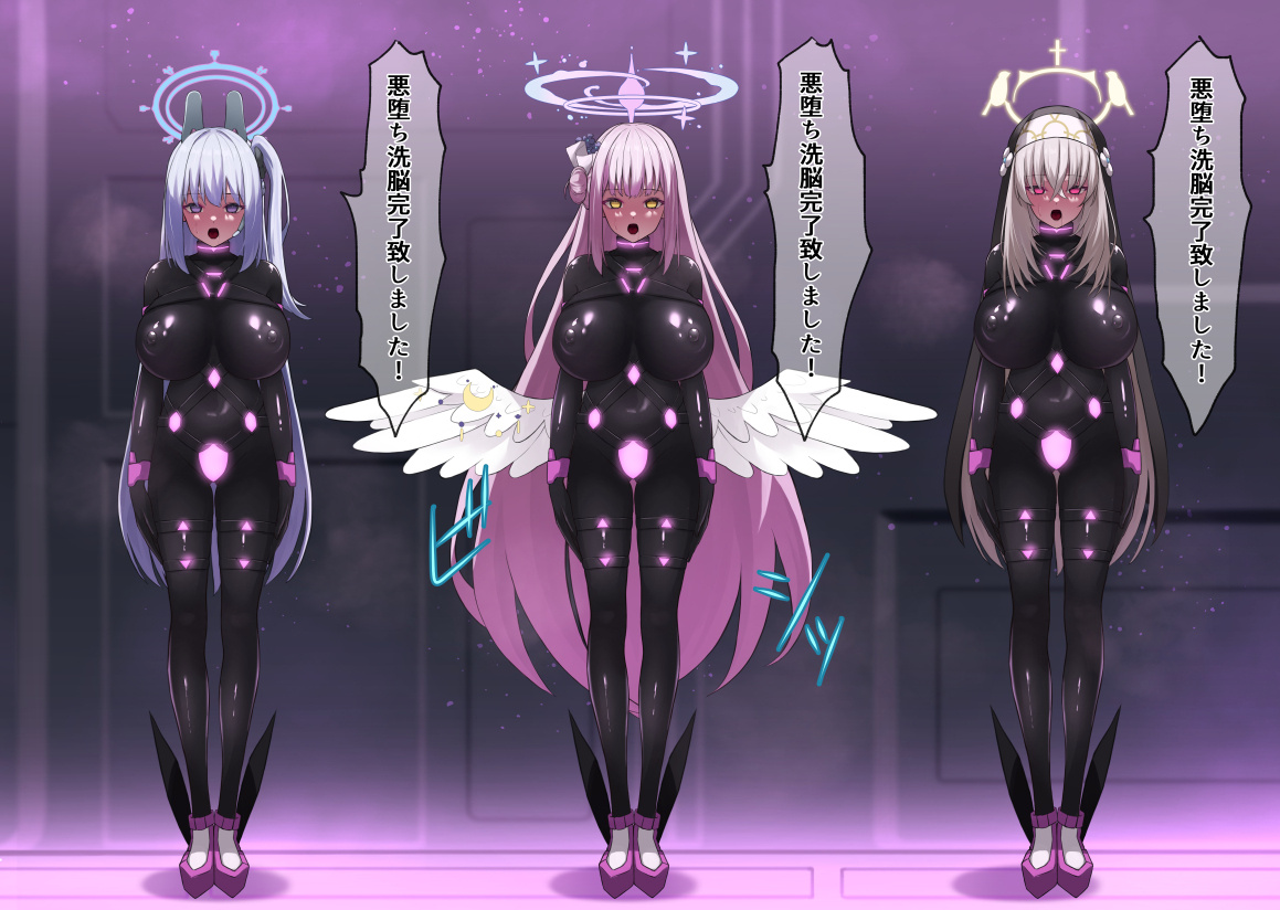 fantiaのコミッションでリクエストいただいた、ブルーアーカイブの伊落マリー、小鳥遊ホシノ、天童アリスのイラストです。 今回は3人が捕まってしまい、仮面とラバースーツによって悪落ち戦闘員化させられてしまうシチュエーションになっております。 全裸、頭の装飾の有り無しのバリエーションも作成しましたので、お楽...