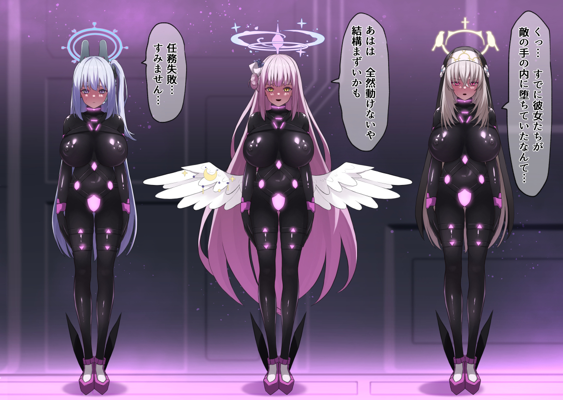 前回捕らえられてしまった3人を救出しようとするが、彼女たちが既に敵の手に堕ちており敗北、逆に自分たちも捕らえられてしまったイメージです。
