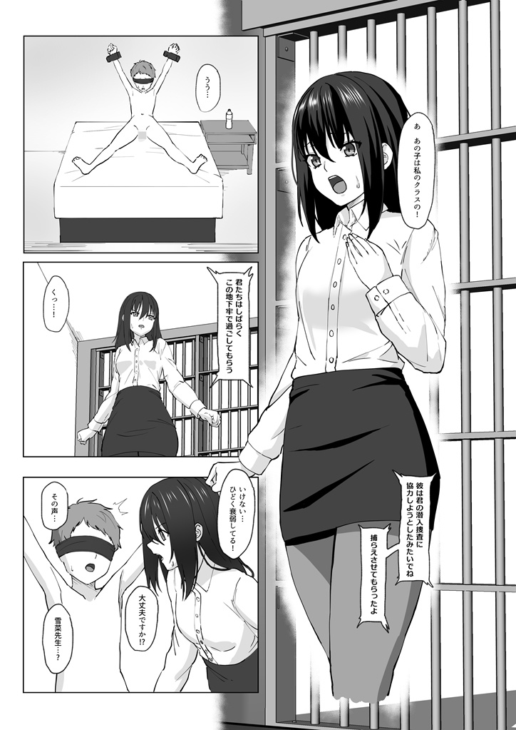 「教育実習生として犯罪組織が経営する学園に潜入した雪菜だったが、正体がばれて地下牢に監禁されてしまう。そこには雪菜のクラスの子が雪菜に協力したということで同じく拘束されており…」といったシチュエーションになっております。