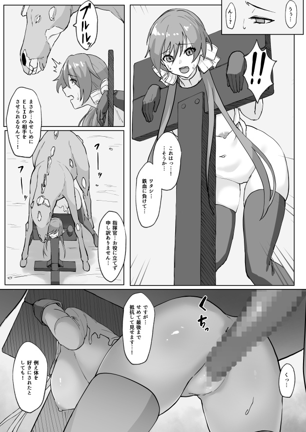 鉄血との戦いに敗れ、拘束されてしまったカルカノ姉が、みせしめとして ELIDの相手をさせられてしまうものです。