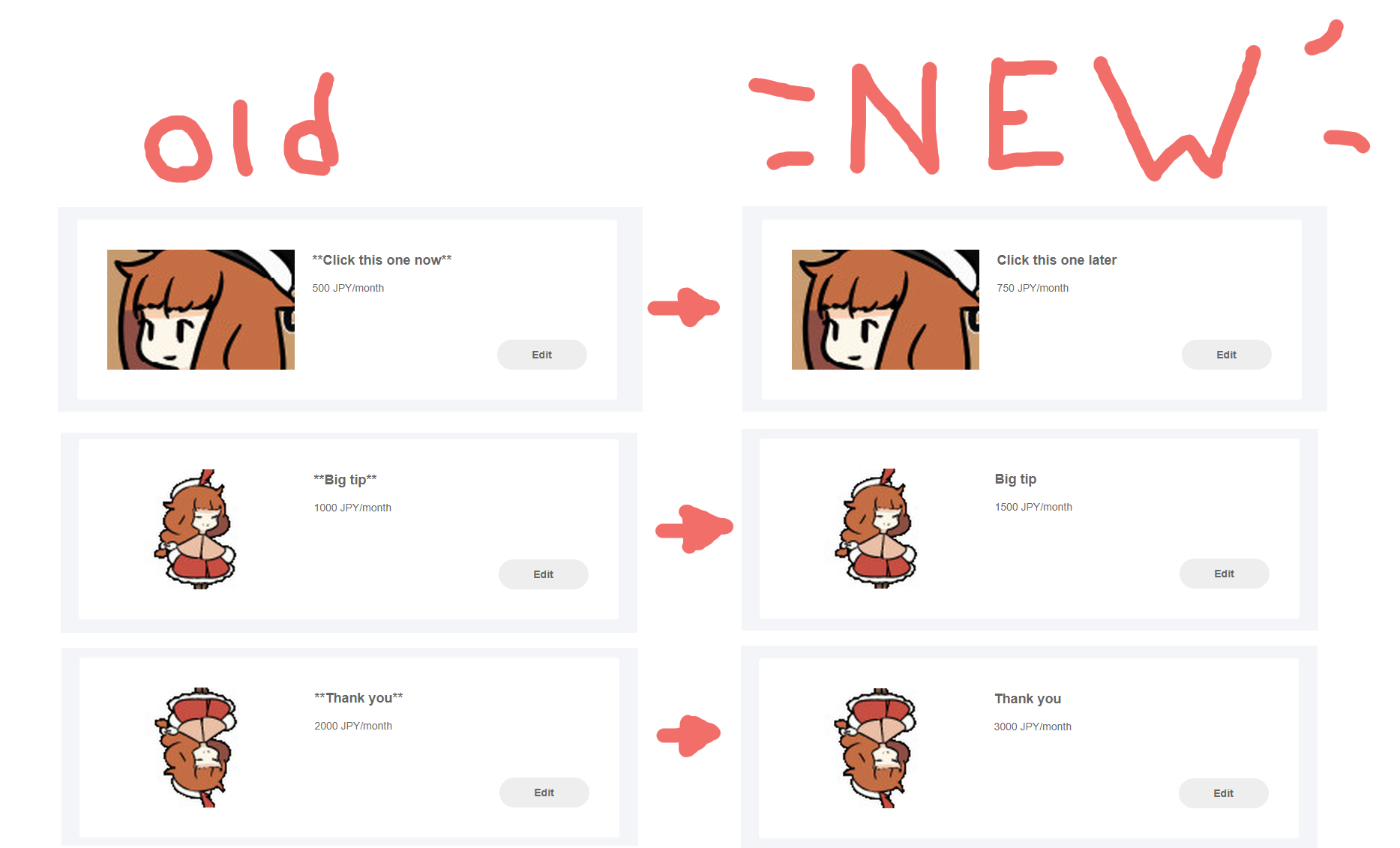 旧プランに代わる新しいプランが設定されました。今すぐ追加支援を表明したい場合は、そちらに自由に誓約することができる!