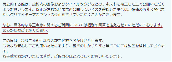 以前のお知らせでは規約に違反しているといわれた場合、規約に違反している投稿をしなくなると書きましたが、