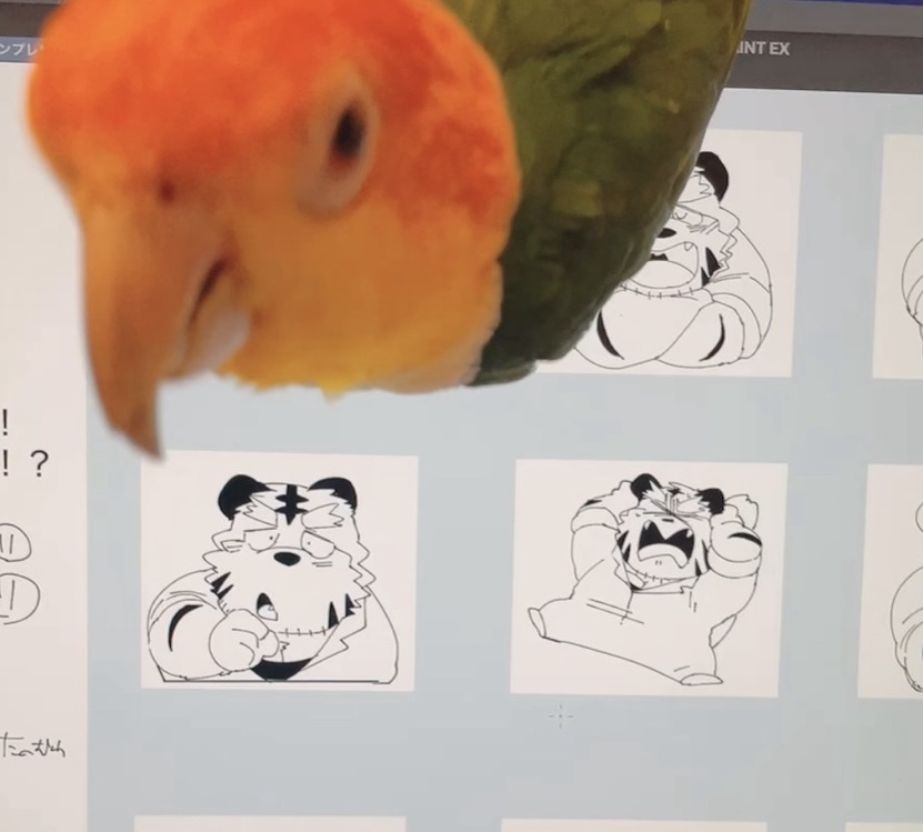 作業妨害まめち(画面の上に足引っ掛けてぶら下がってます 見切れてしまった…)