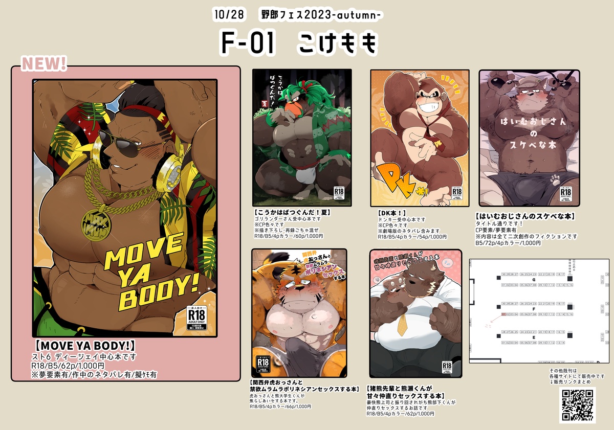 9/17 けもケット14 新刊情報です! 新刊① 猪熊先輩と熊瀬くんが甘々仲直りセックスする本 豪快熊上司と振り回されがち熊部下くんが仲直りセックスするお話です。 B5/62p/4pカラー/1,000円 新刊② こうかはばつぐんだ!夏 ゴリランダーさん受中心本です (??/??etc…) B5/60p/4pカラー/1,000円 新刊③ DK本! DK受中心...