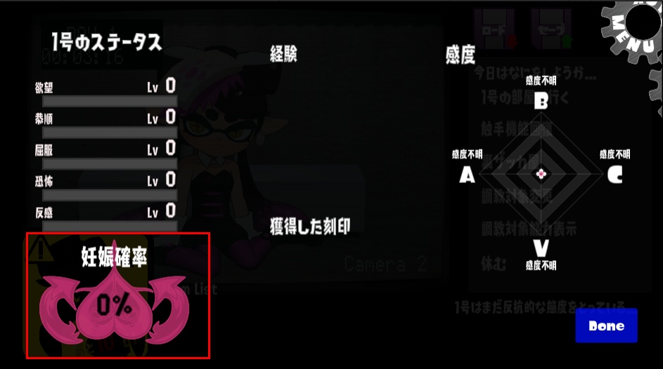 中出しをすると低確率で[妊娠]刻印を取得するようになりました。コレクション要素ですが、エンディング4にかかわります。