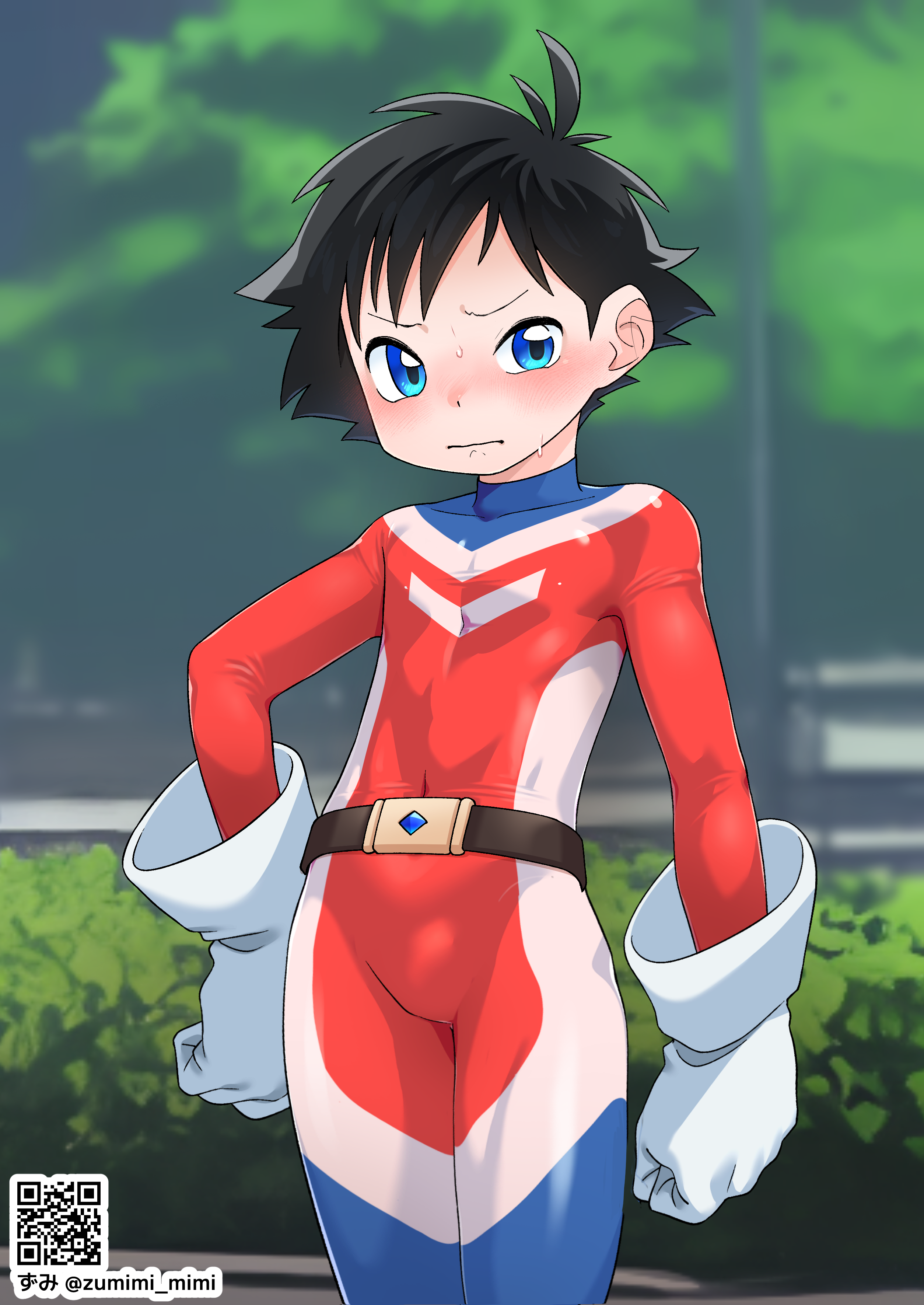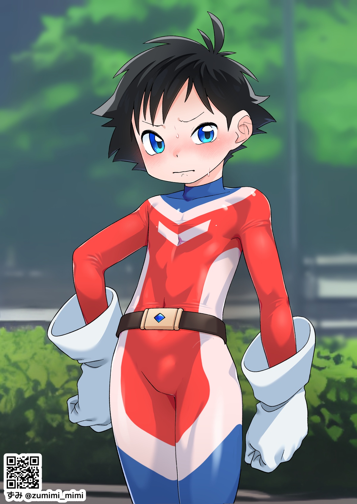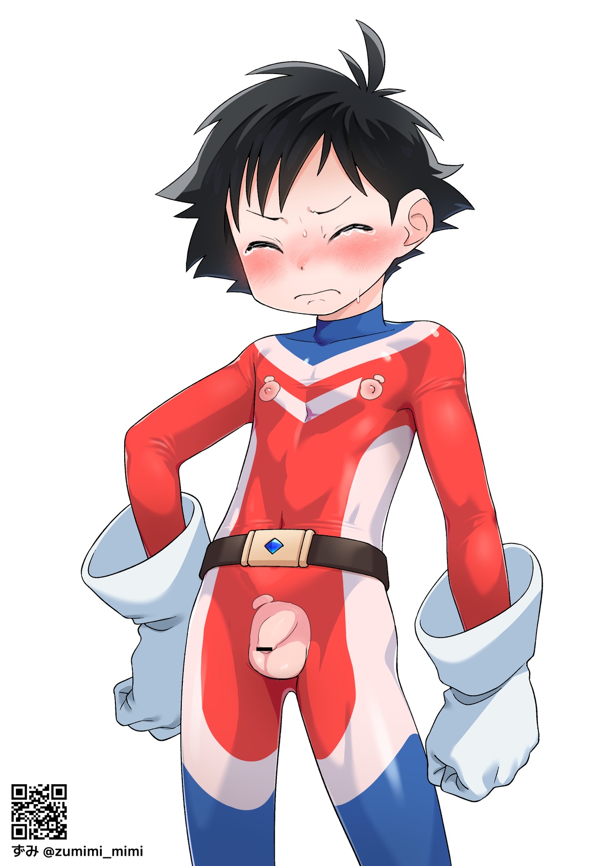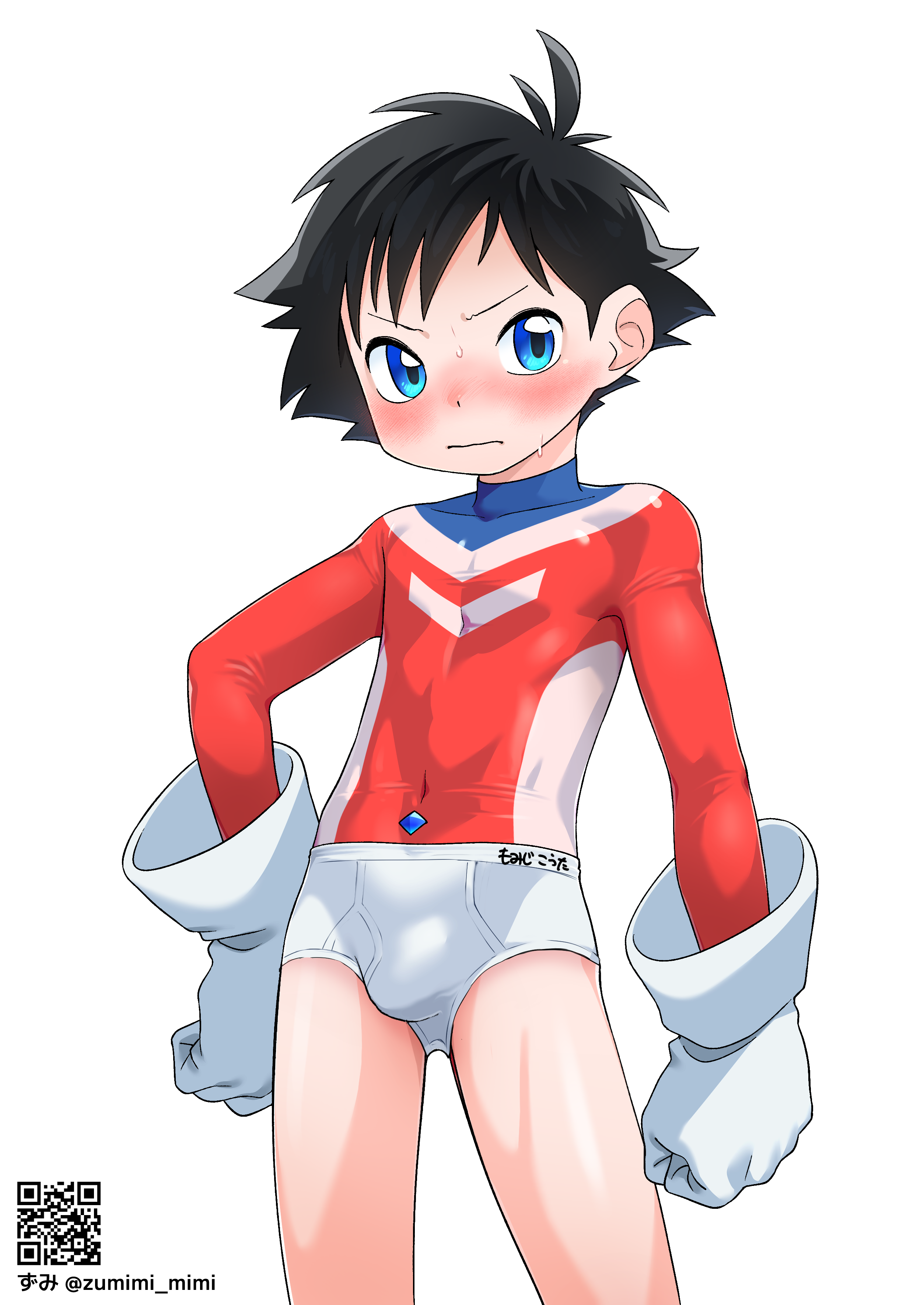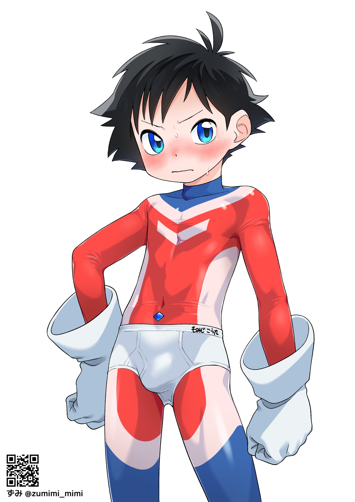 でもヒーロースーツの上にガキパンツ穿かせるのは絶対外したくなかったので描きました。わざわざゴムに名前書いた白ブリを渡して着せたい……