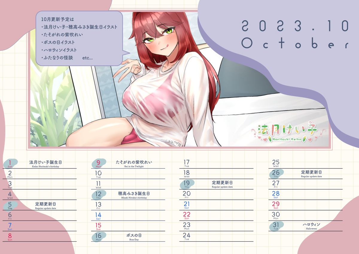法月けい子 お誕生日記念/10月支援サイト更新スケジュール