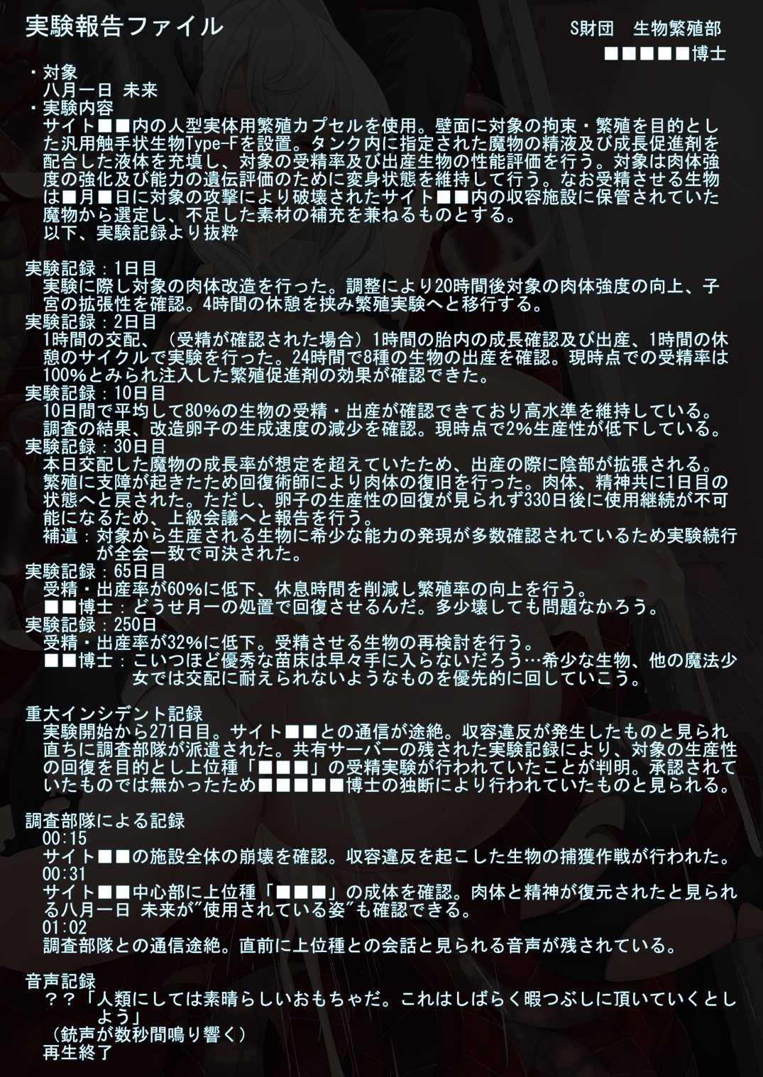 【全体公開】膨乳改造された変身ヒロイン未来さん魔物繁殖実験記録【10枚】