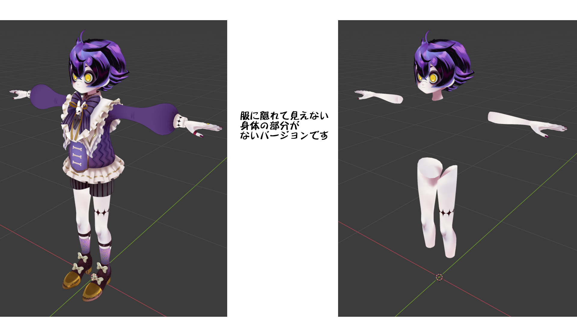 このモデルはローポリ版です。服の裏地、服に隠れている身体の部分がないバージョンです。