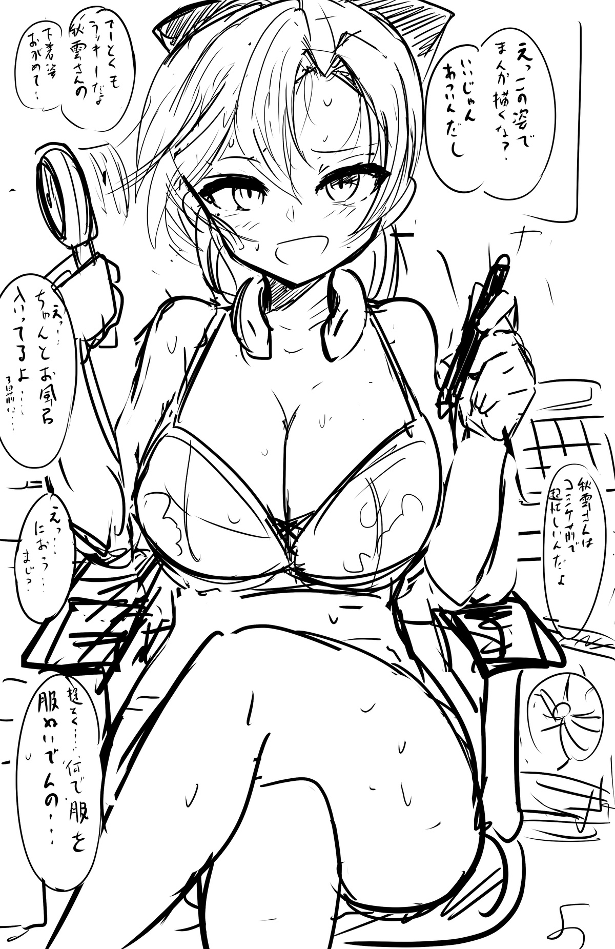 下着で漫画を描くだらしない秋雲さん