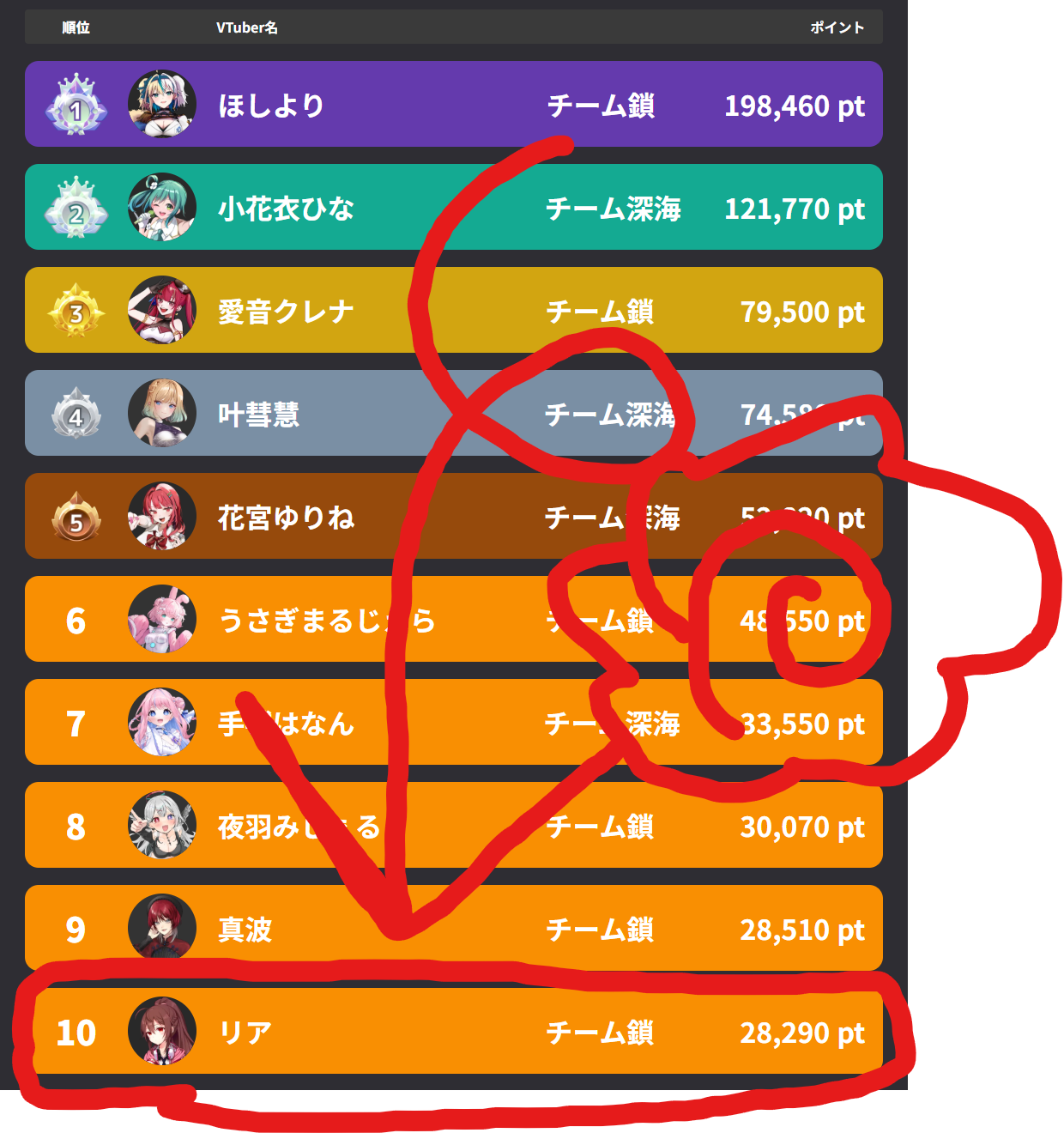 10位です、10位。