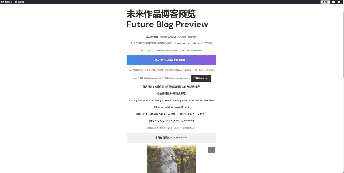 Thank you all for your love of R18G culture and your support of my work. In short, this new regulation will have minimal impact on us R18G creators. As we all know, Pixiv officially bans all uncovered private parts. However, Fanbox can still upload ZIP archives to publish uncovered content. (Fanbox is designed to be unobtrusive, otherwise Fanbox would not need to exist) Obviously Pixiv knows this, as long as the creator does not directly publish the offending work. Pixiv is a tacit approval, which means that it can indirectly publish uncoded + R18G content. most of Pixiv's revenue comes from fees, and Fanbox charges the highest position of the platform in terms of formalities. 10% or more (because Paypal embodies the need for fees). Currently there is no impact, I will still update on Fanbox (but based on the form, may change the way to submit, for example, then Fanbox release browse WordPress password). And may consider adding fantia platform in the future.