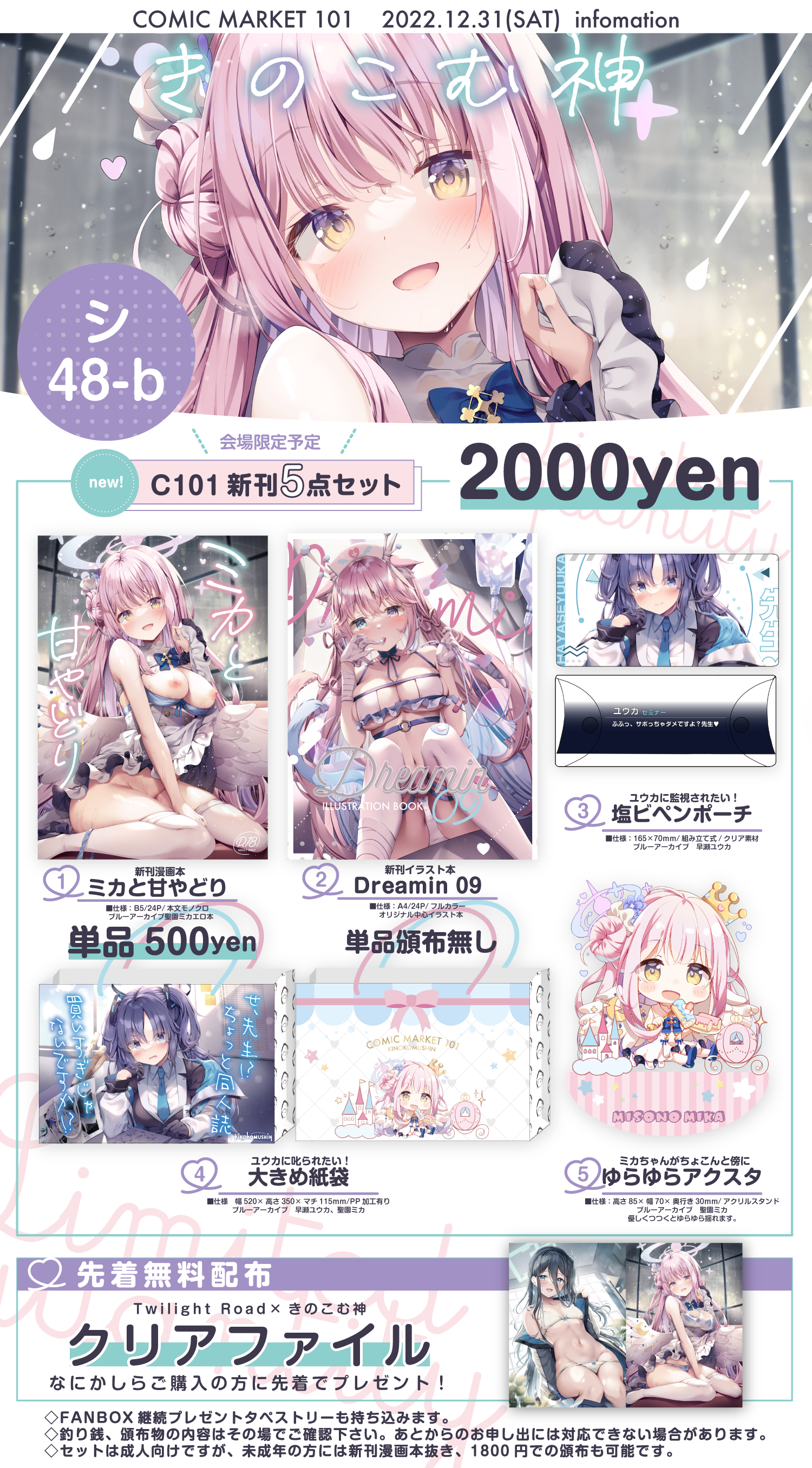 ・限数は当日の様子次第でアナウンスします。Twitterをご確認下さい。