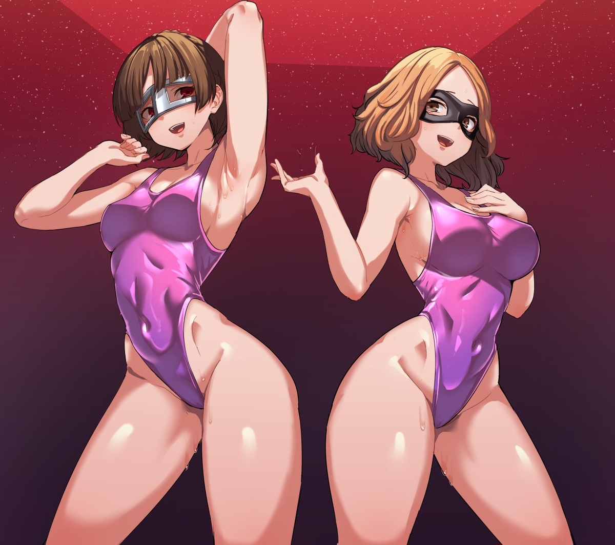 【全体公開】【skebイラスト】手コキおじさんに負けちゃったふたなりハイレグ怪盗団のクイー〇とノ〇ール