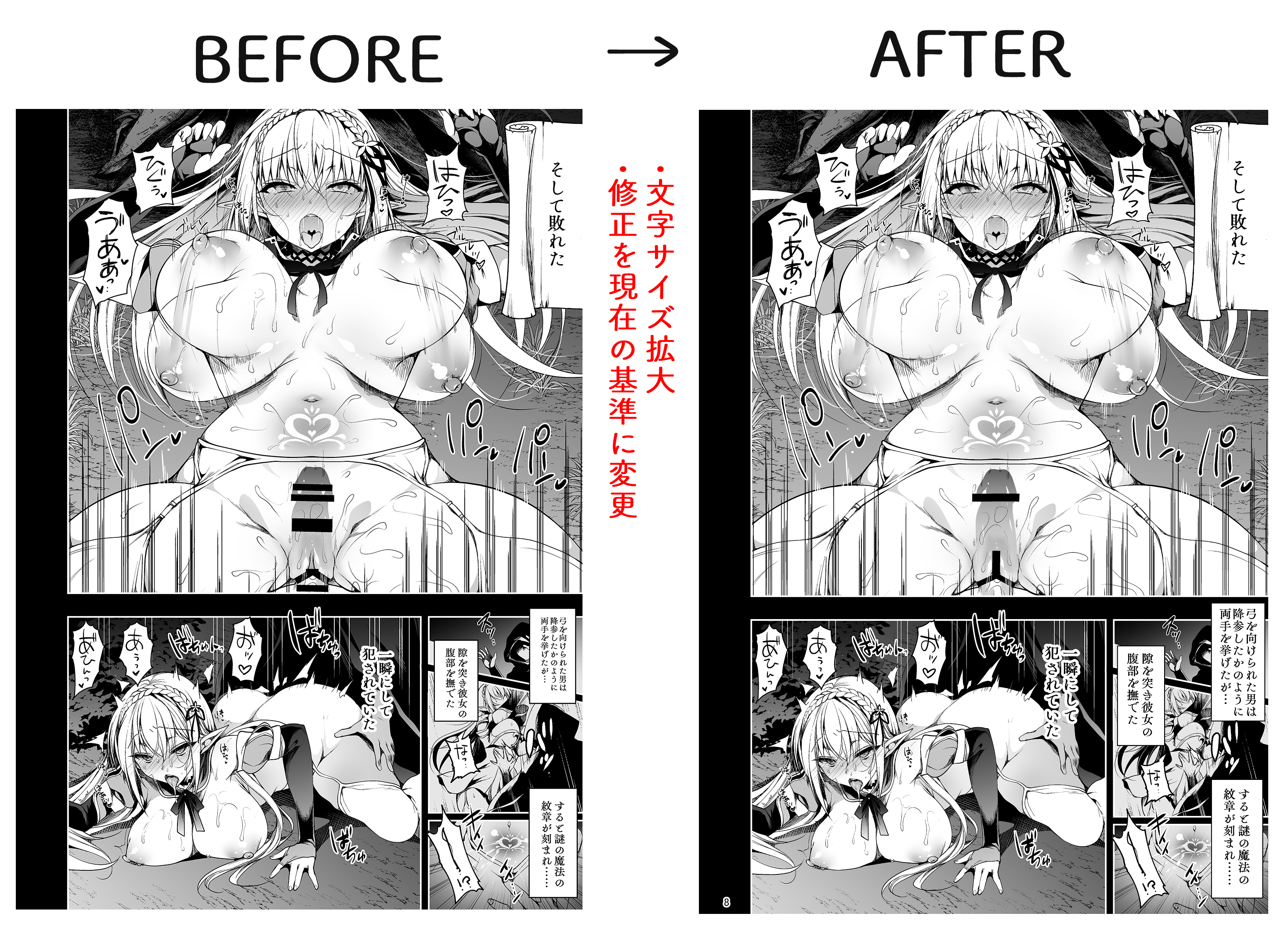 ・作画修正、文字フォントサイズ変更・消し修正など行っています。