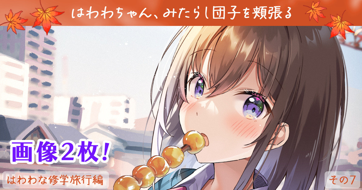 「はわわちゃん、みたらし団子を頬張る」の団子違い、背景違いのバージョンになります。