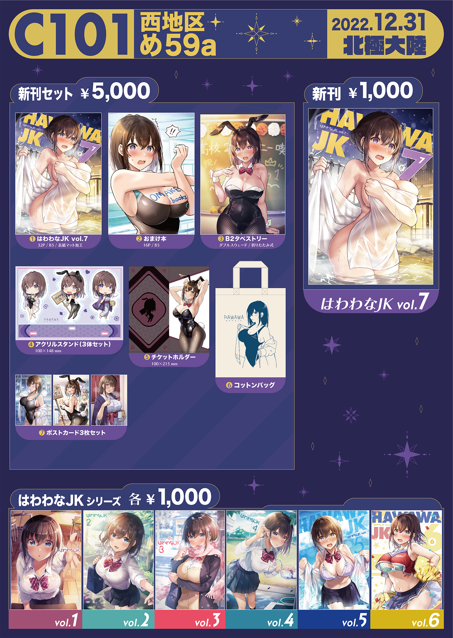 今日の更新はC101お品書きと、新刊「はわわ vol.7」と新刊グッズセットの詳細です!