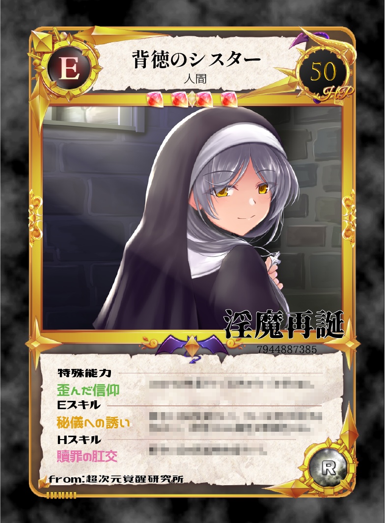 淫魔再誕からは描き下ろしはありませんが、『尊大な淫魔』までの13キャラがカード化されます。それと1シーンだけトラップカードにしていただきました。