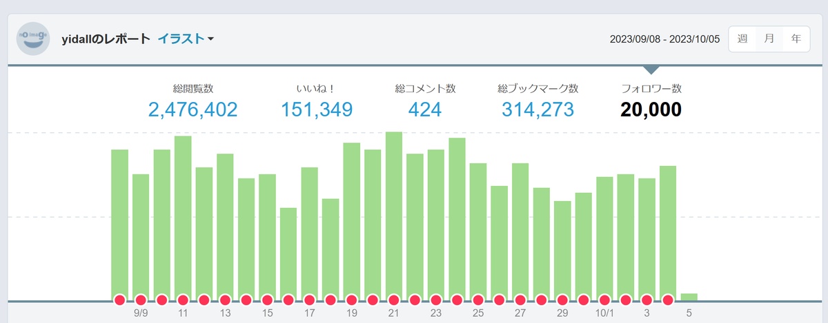 10/5の夜中にありがたいことにpixivのフォロワー数が2万人に到達しました!